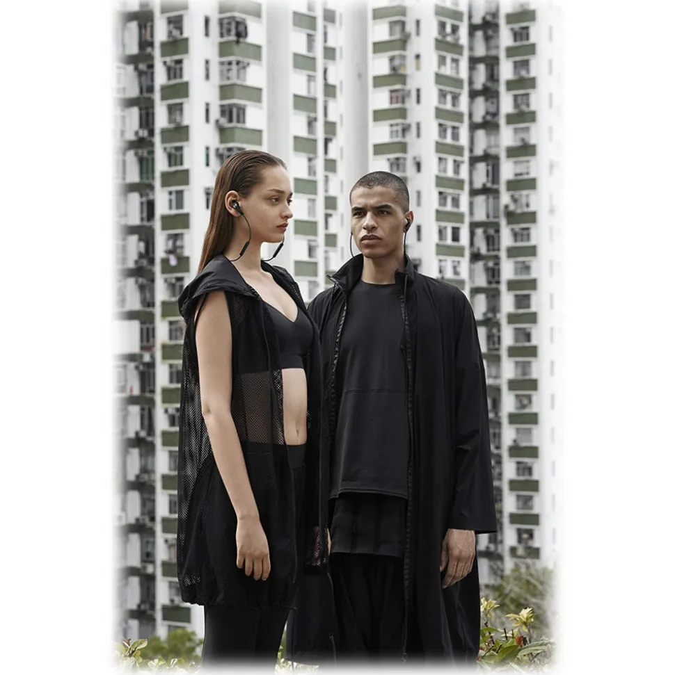 Inspired by the materials used in the production of sneakers, the cord connecting the earbuds is encased in braided textile. The housing of the earphone is made of textured rubber and polymer, designed to resist sweat and moisture as well as wear and tear. The in-line remote comes with aluminium button controls.