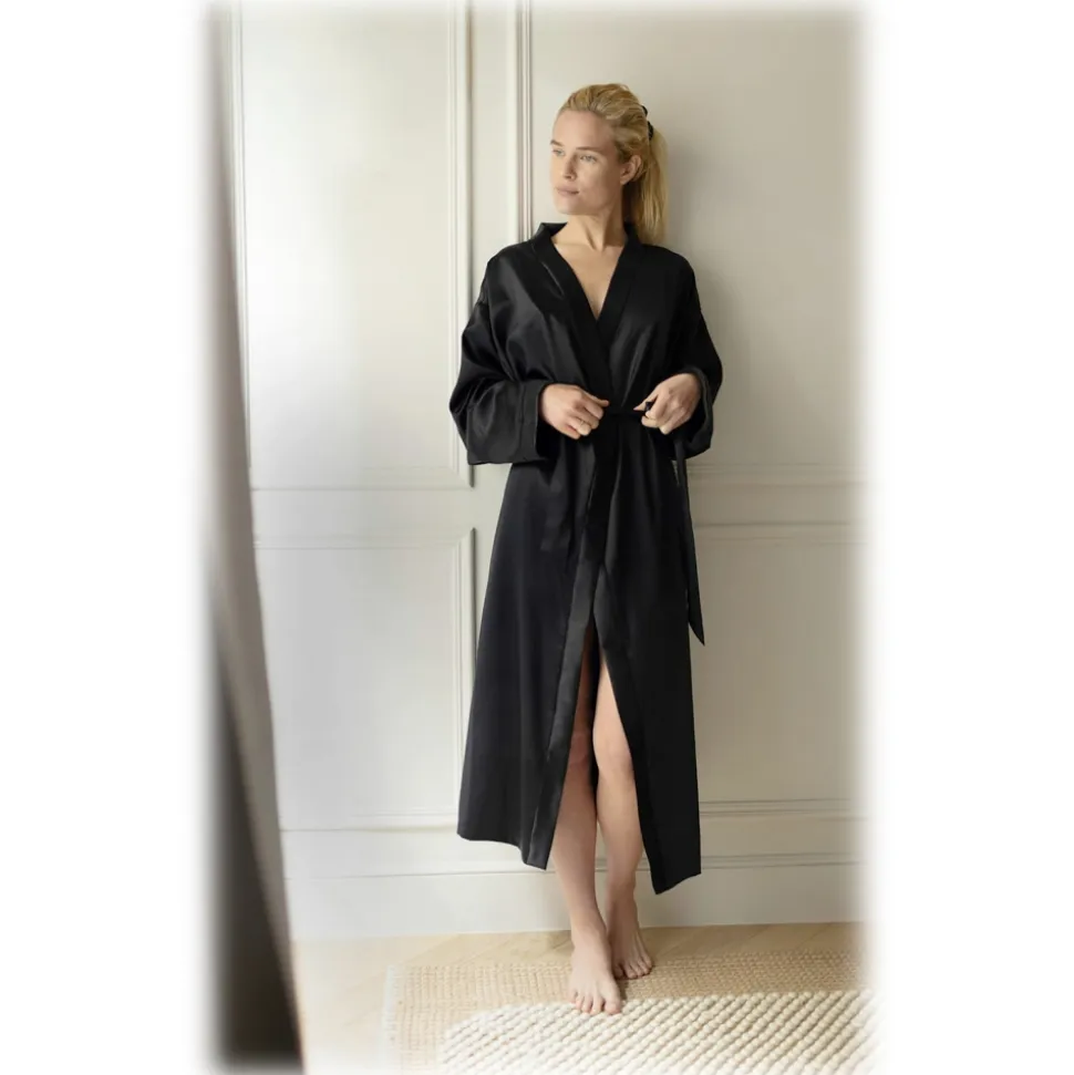 by Dariia Day – Long Silk Robe – Midnight Black – Fashion – New Collection – Mulberry Silk – Artisan Silk Robe – Luxury