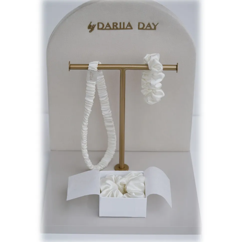 by Dariia Day – Silk Headband and Scrunchie Set – Powder White – Fashion – New Collection – Mulberry Silk – Artisan Silk Headband and Scrunchie – Luxury