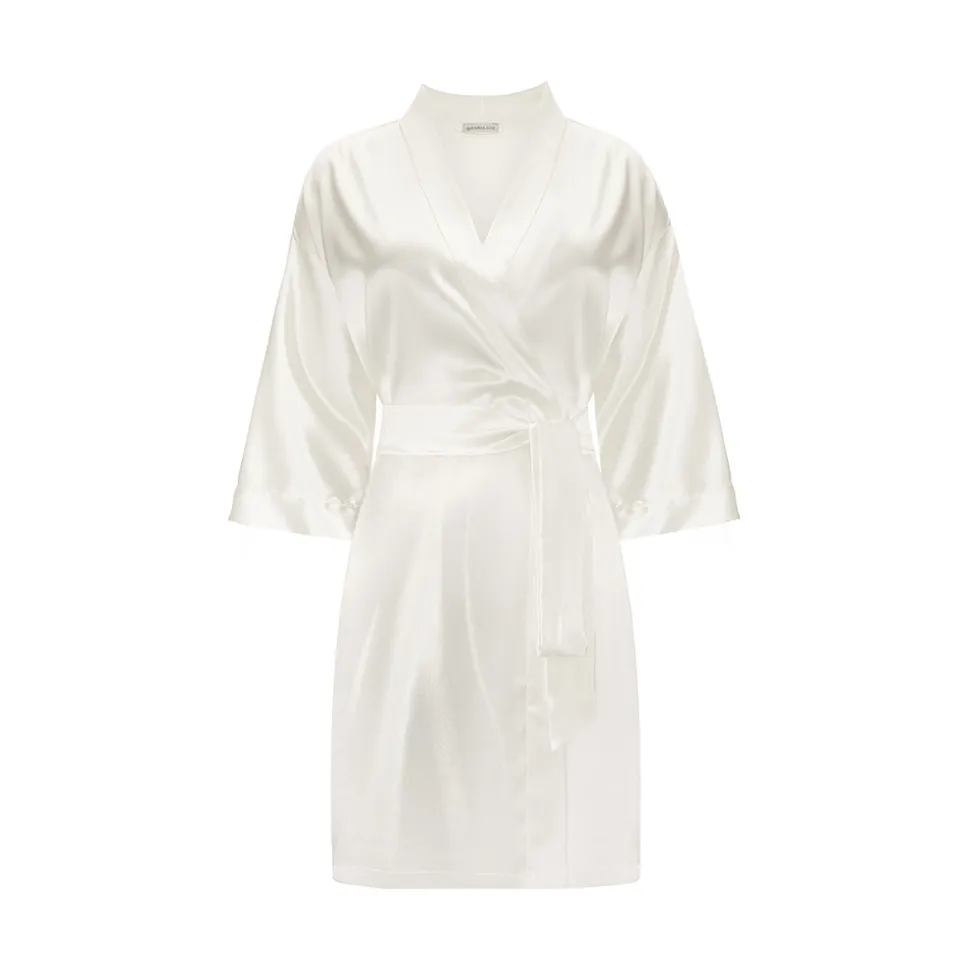 by Dariia Day – Silk Robe – Powder White – Fashion – New Collection – Mulberry Silk – Artisan Silk Robe – Luxury