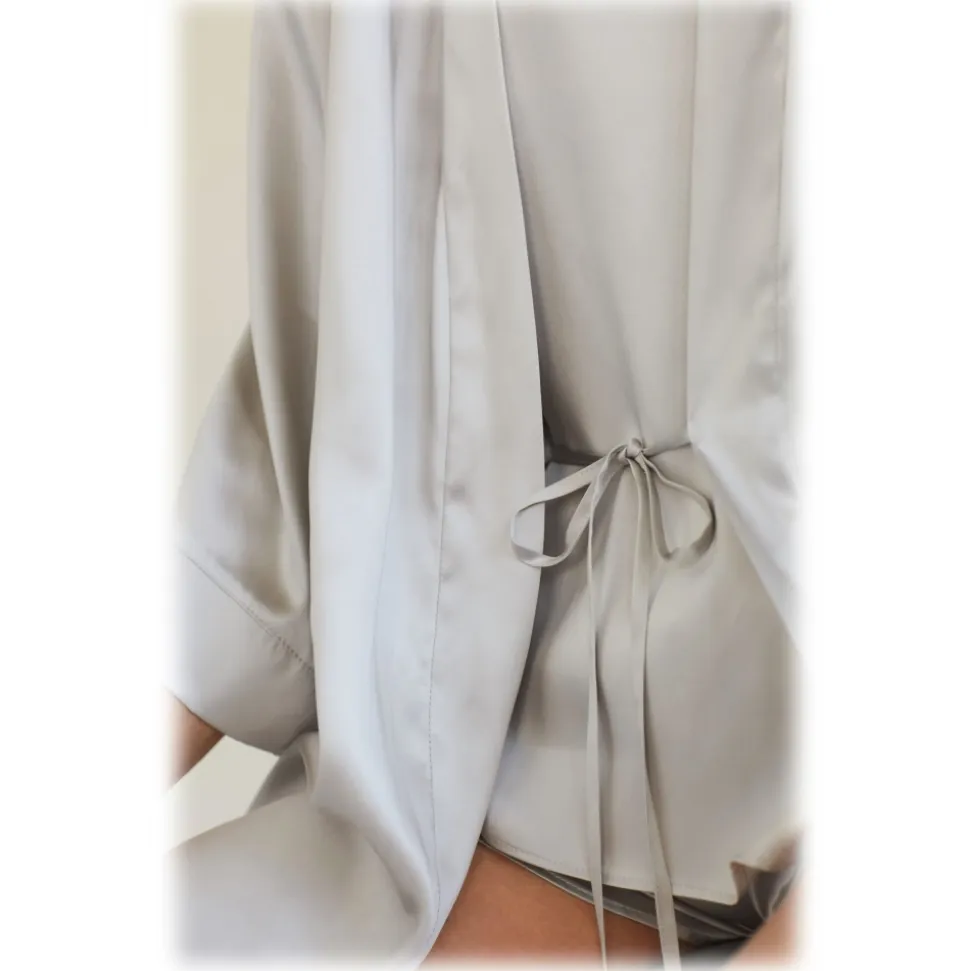 by Dariia Day – Silk Robe – Silver Grey – Fashion – New Collection – Mulberry Silk – Artisan Silk Robe – Luxury