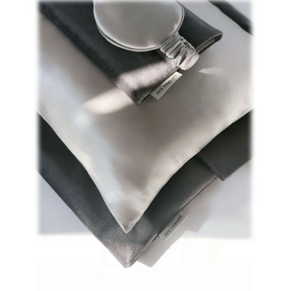 by Dariia Day – Silk Travel Set – Silver Grey – Bedding – Home – Mulberry Silk – Artisan Silk Pillowcase – Luxury