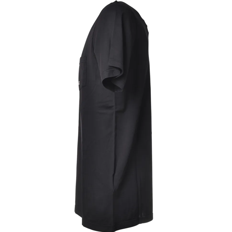 Short-sleeved T-shirt, with pocket on the left front side, plus writing.