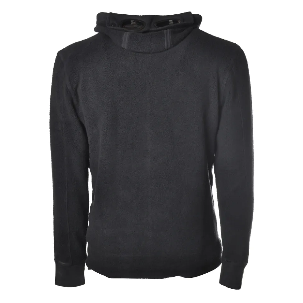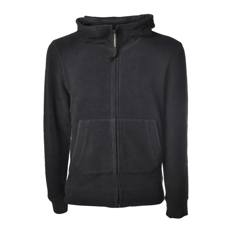Sweatshirt with hood and glasses, front opening with zip and pockets on the bottom length, entirely made of fleece, C.P Company.