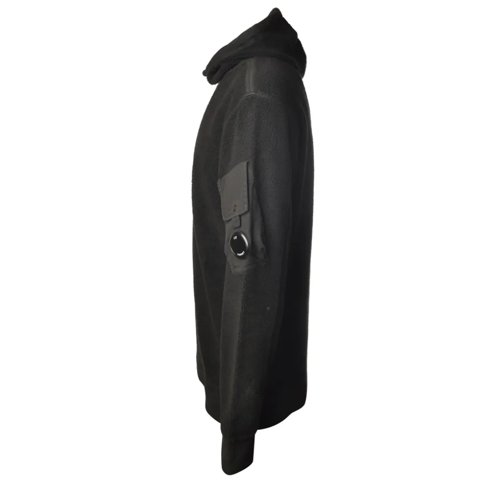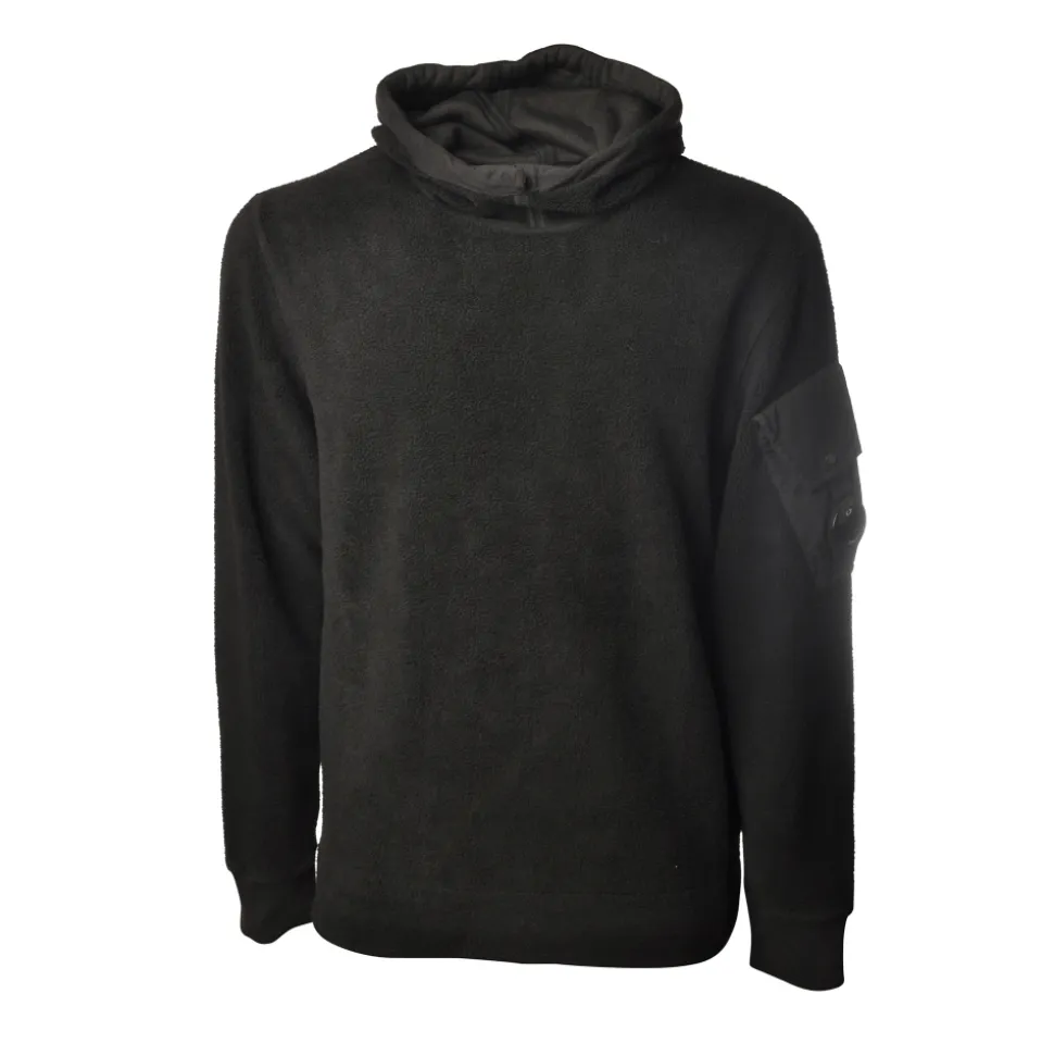 Long sleeve sweatshirt, with hood and pocket plus rigid bubble on the left sleeve, entirely made of fleece, C.P Company.