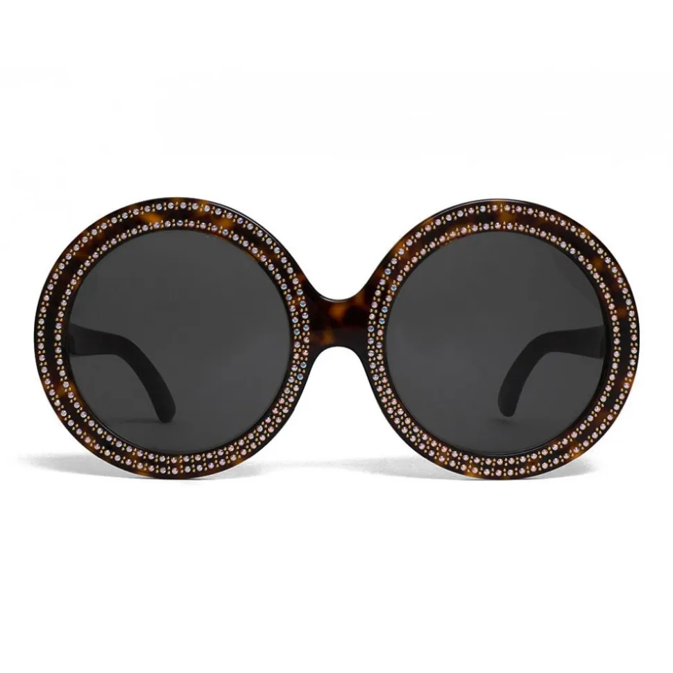 Round sunglasses with crystal-studded and metal-studded acetate frames.