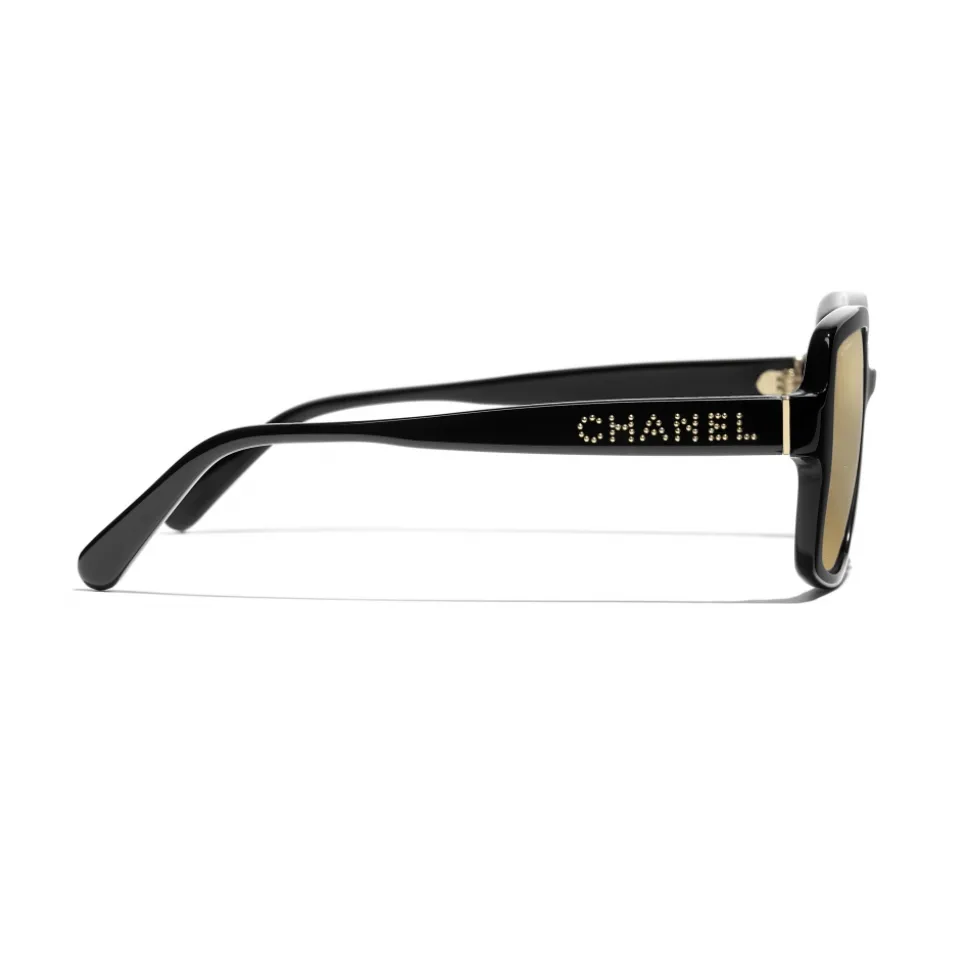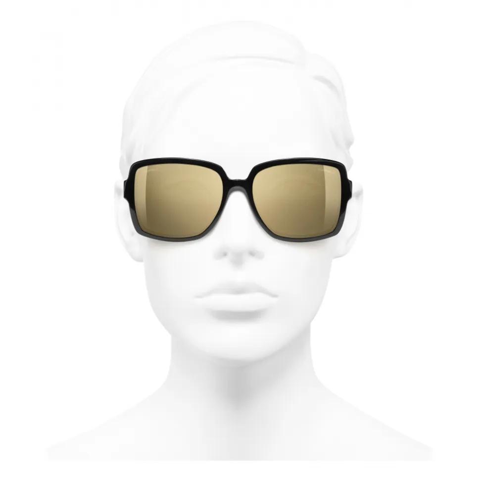 Chanel – Square Sunglasses – Black Gold Glitter – Chanel Eyewear