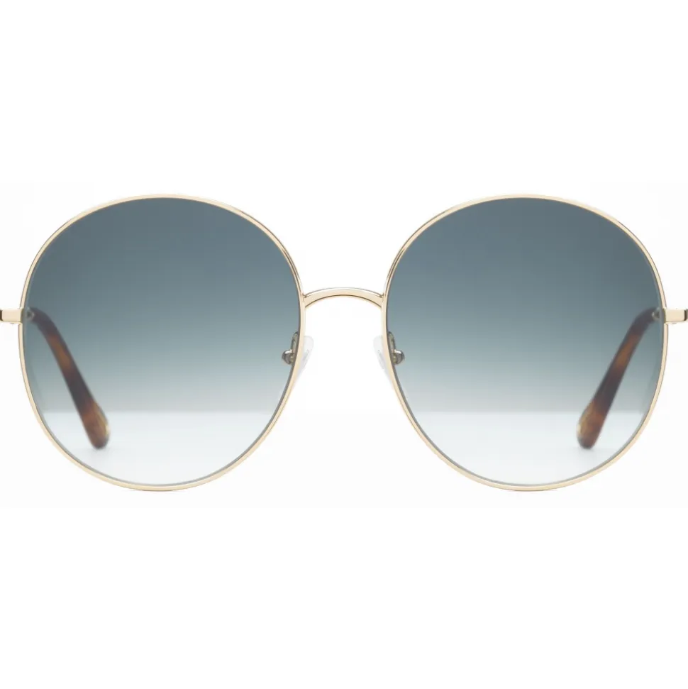 Eliz round sunglasses, easy to wear and characterized by an ultralight gold metal frame, give off a modern and casual charm.