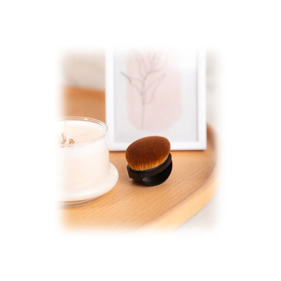 Use the brush in long, circular motions to spread it evenly onto the skin.