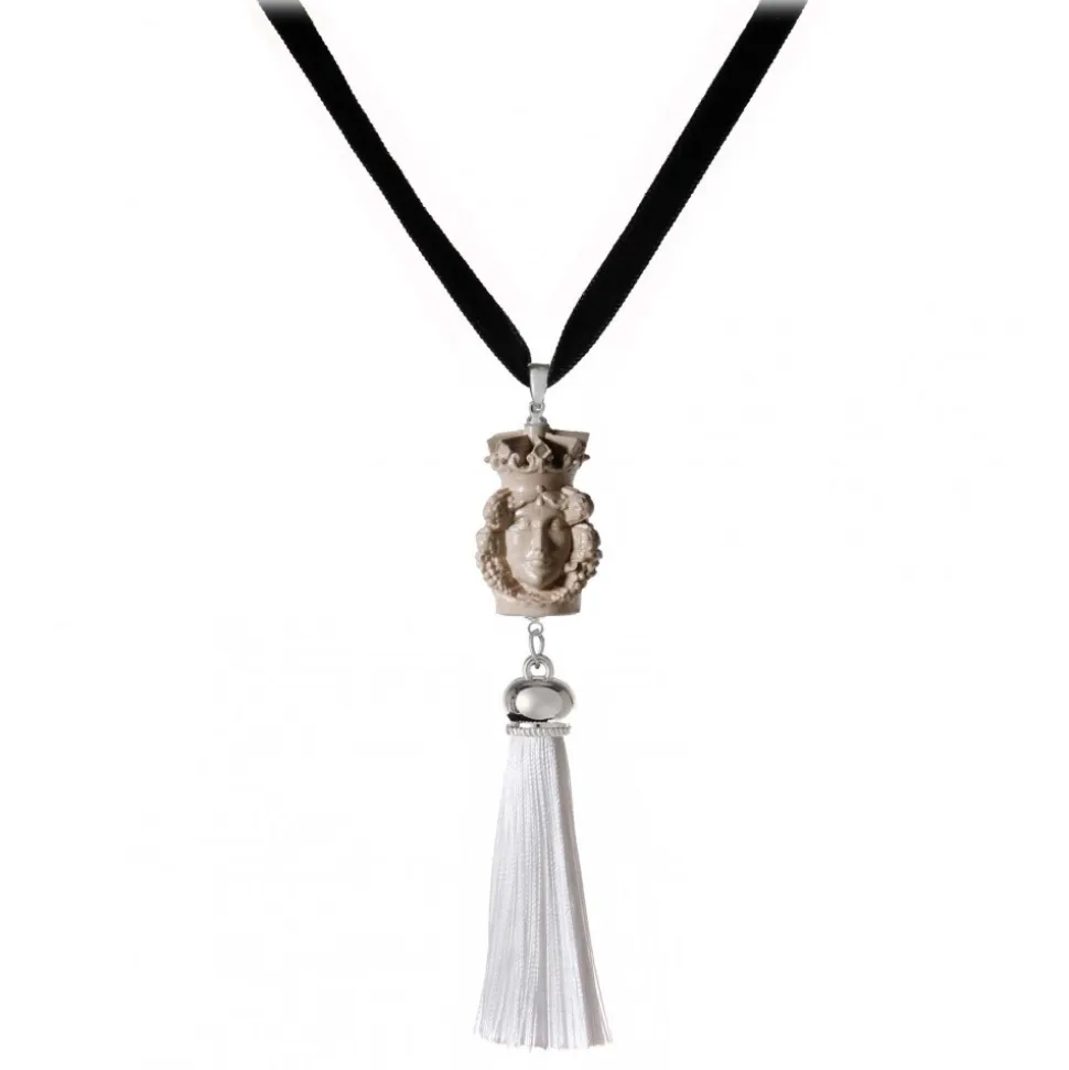 Handmade ceramic necklace handmade by skilled Sicilian craftsmen. Engraved and steel hook. Necklace arrears in 3D engraved tassel.