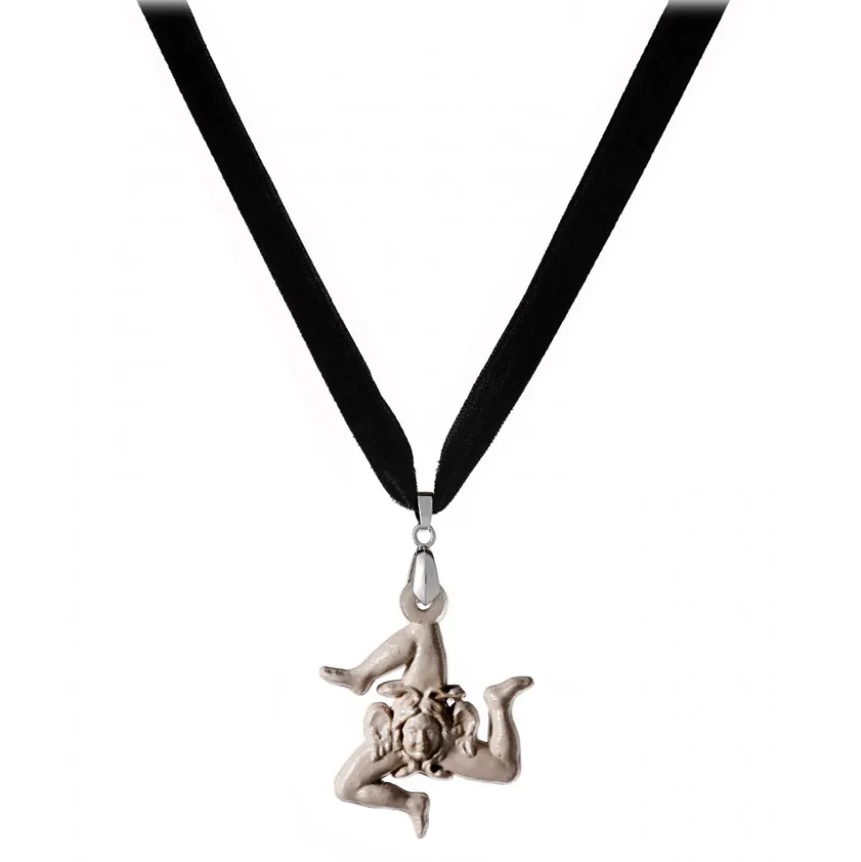 Trinacria Necklace – Sicilian Artisan Handmade Necklace in Ceramic – Sicilian Necklace