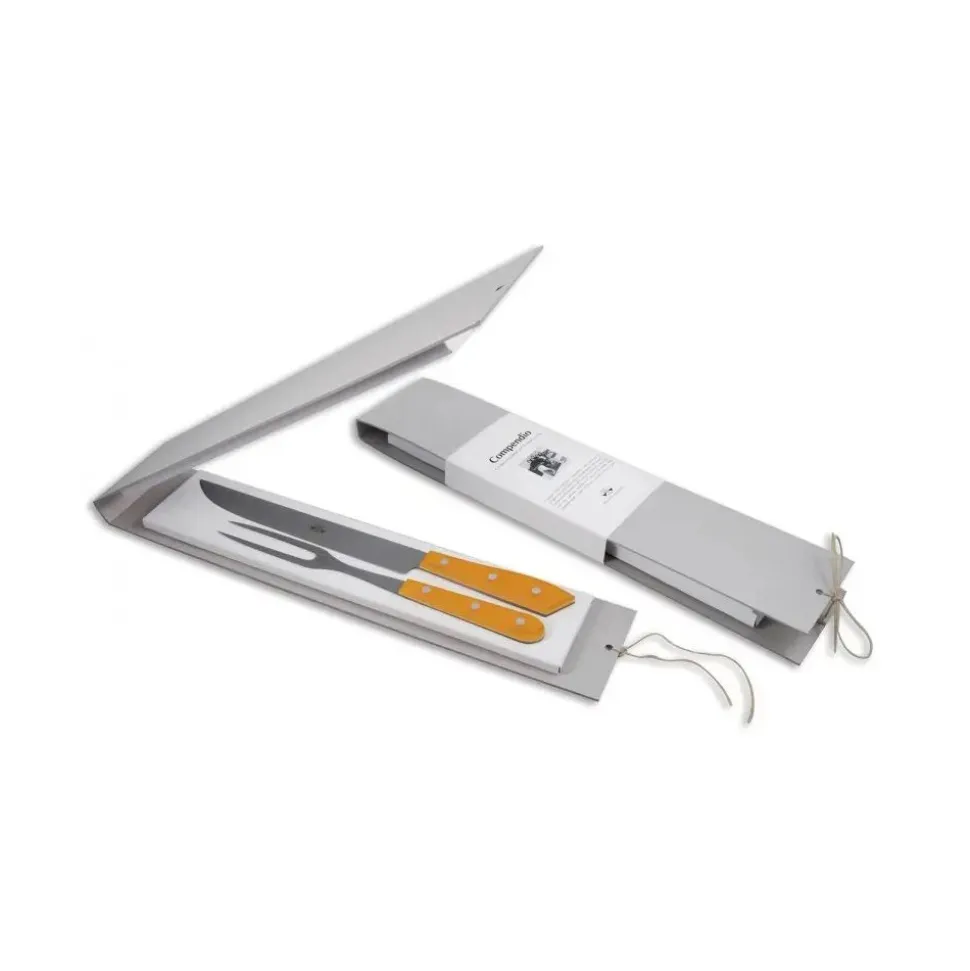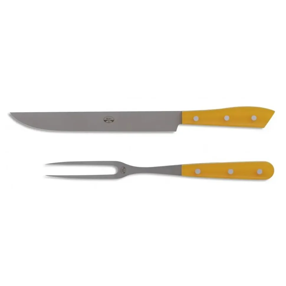 Exclusive Berti 1895 Cutlery Set. Roast set, plexiglass, laser cut blade. Whole tang, amber.