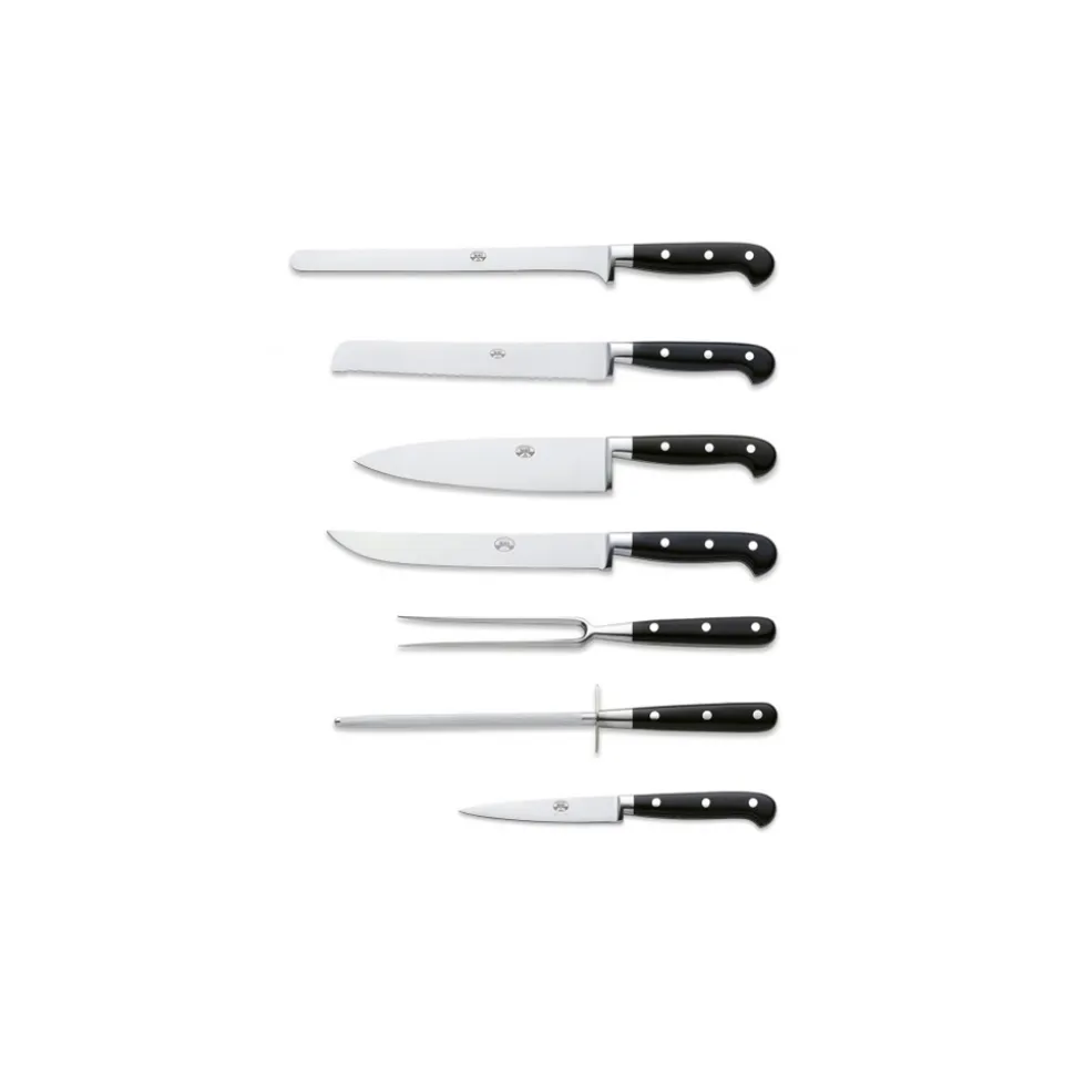 Exclusive Berti 1895 Cutlery Set. Preparation and service set, plexiglass, forged blade. Whole tang, black.
