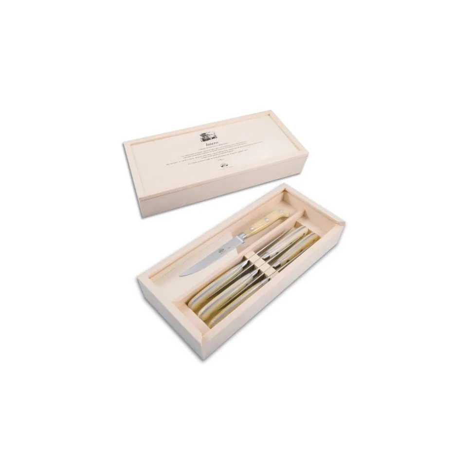 Exclusive Berti 1895 Cutlery set. Steak knives, plexiglass, forged blade. Whole tang, cream.