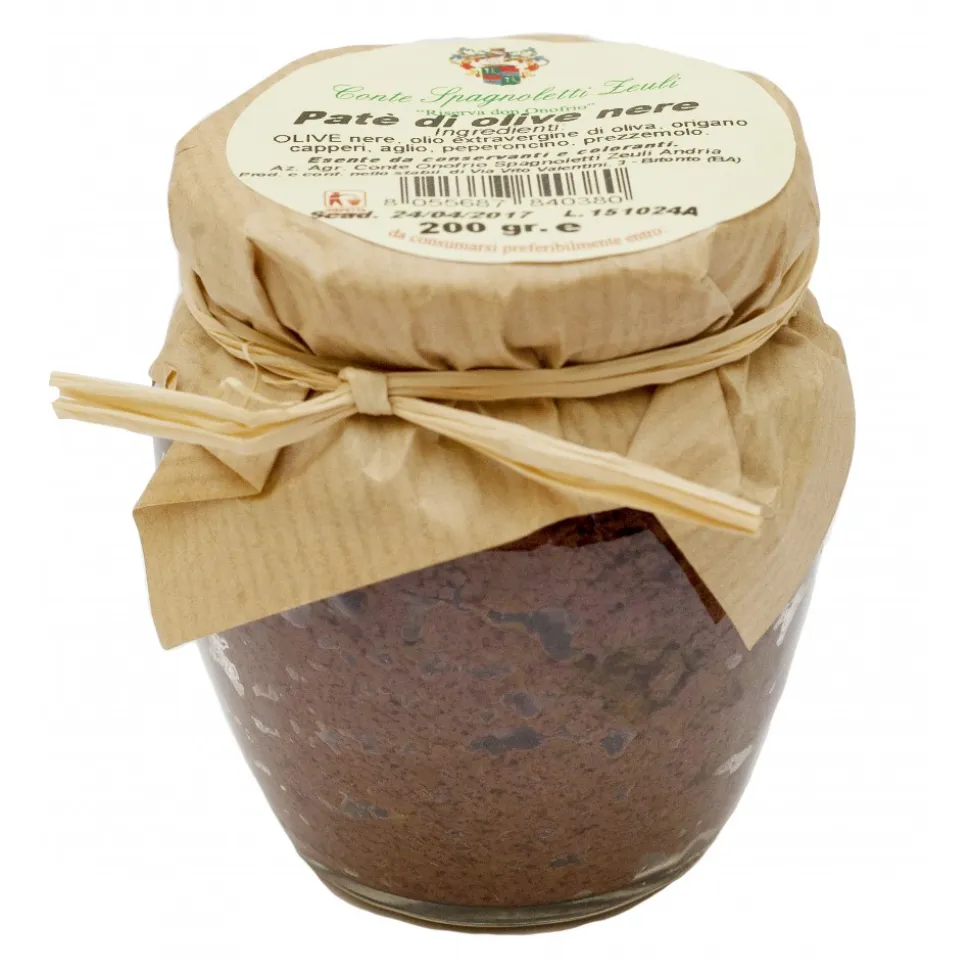 Ingredients: black olives, extra virgin olive oil, oregano, capers, garlic, chilli, parsley.