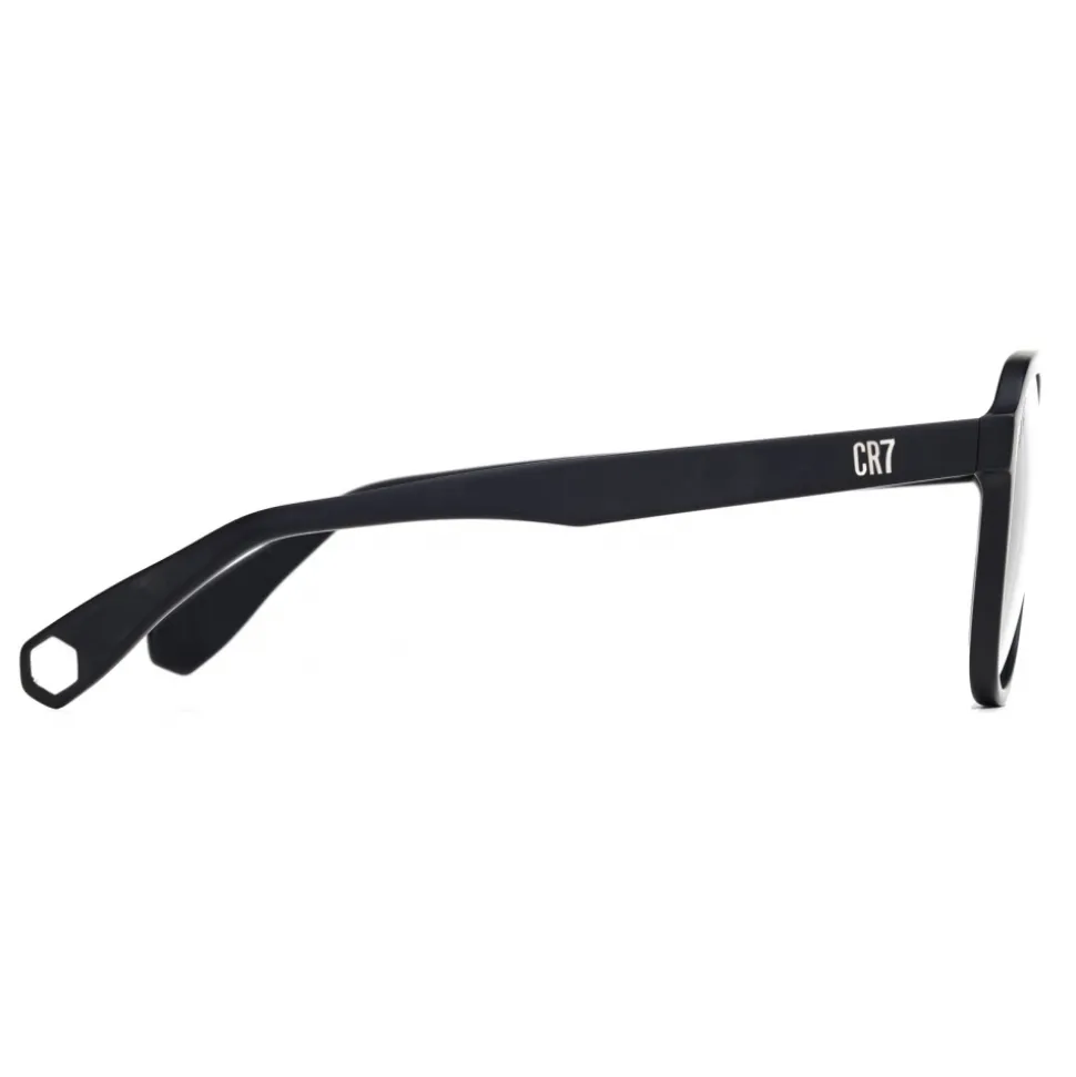 A model of sunglasses made entirely of acetate characterised by a large shape and a modern style embellished with metal details inserted on the internal part of the frame. The BD002 model features the number ’7’ and the ’CR7’ logo inserted under the lacquer, symbols that identify the best player in the world: Cristiano Ronaldo, on both the hinges and the temples. The temple tips, made externally with a diamond shape, have a metal hexagon that is reminiscent of the unmistakable pattern found on footballs. The lenses have Cristiano’s laser-engraved signature on the top left. There are five colours combined with full and shaded lenses which represent the premium segment of this new eyewear collection.
