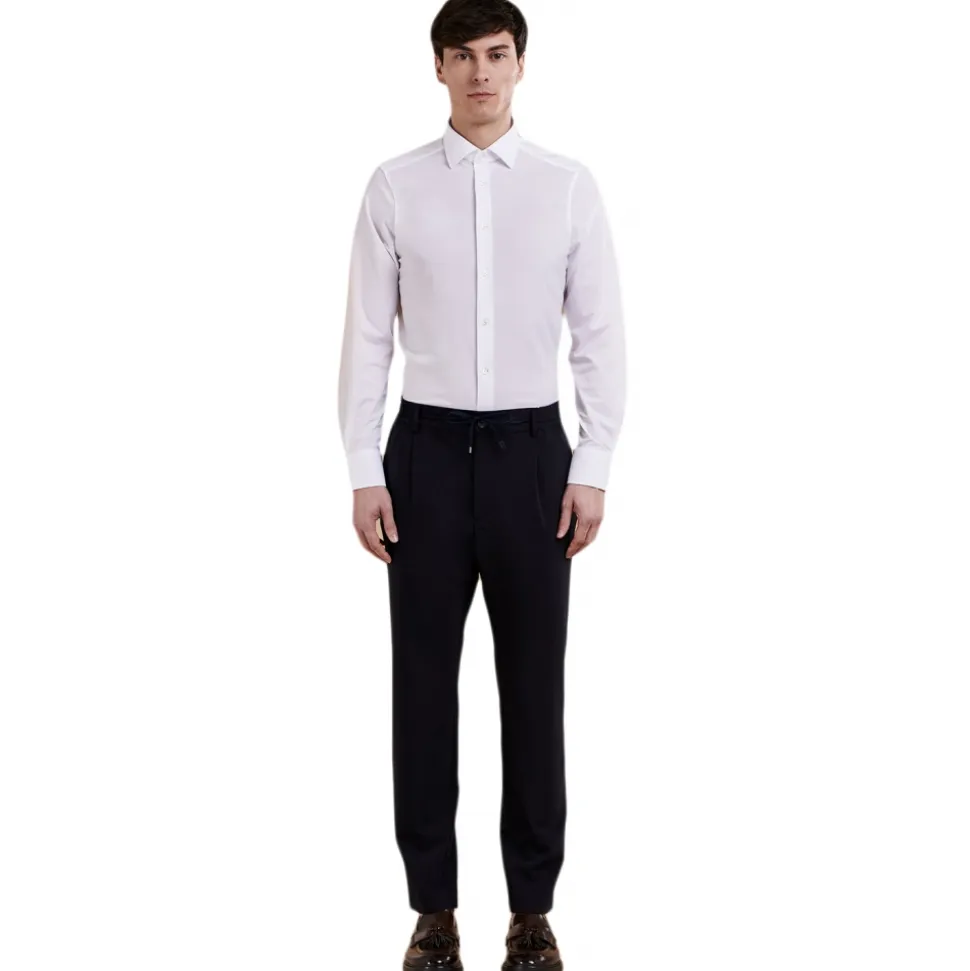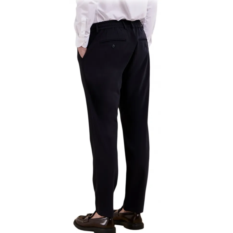 Tapered fit trousers with elasticated belt in ultra stretch virgin wool