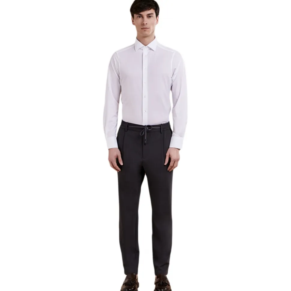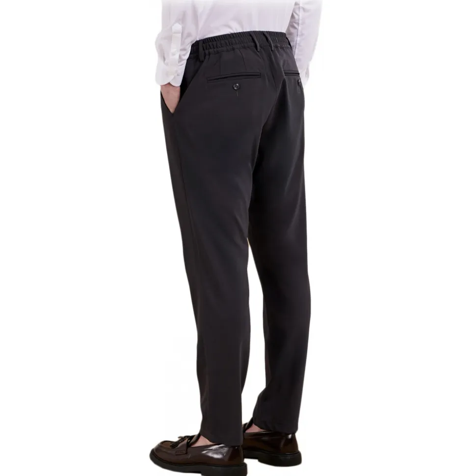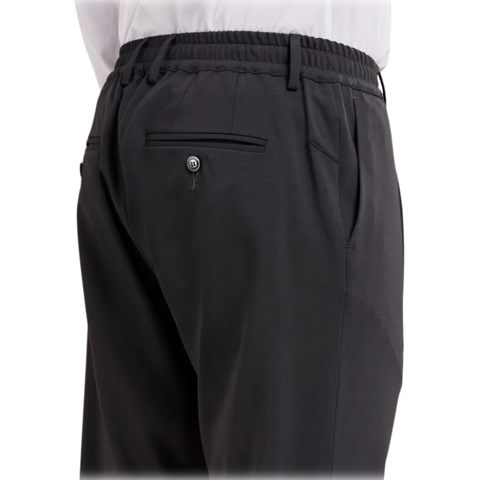 Tapered fit trousers with elasticated belt in ultra stretch virgin wool