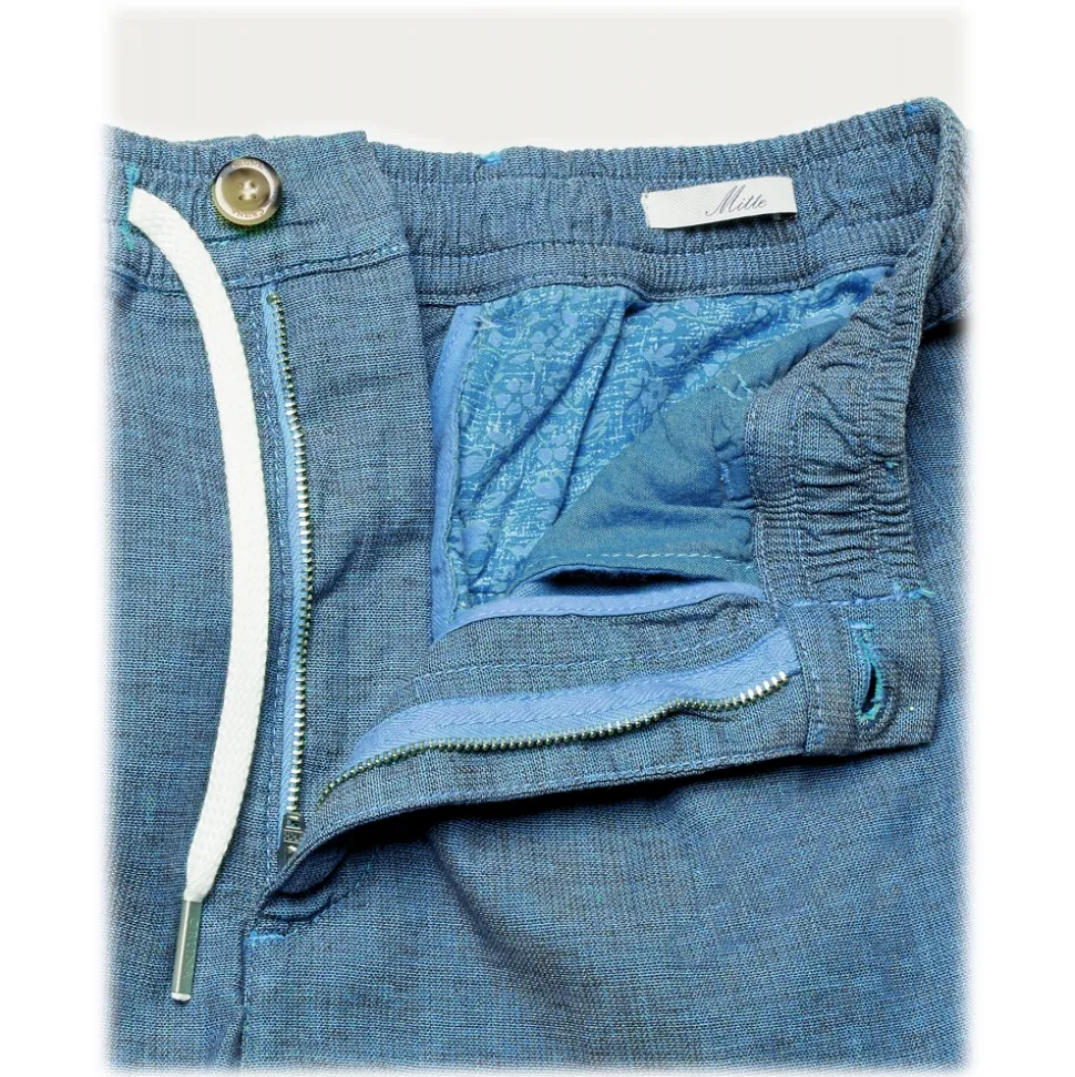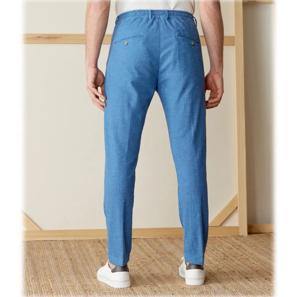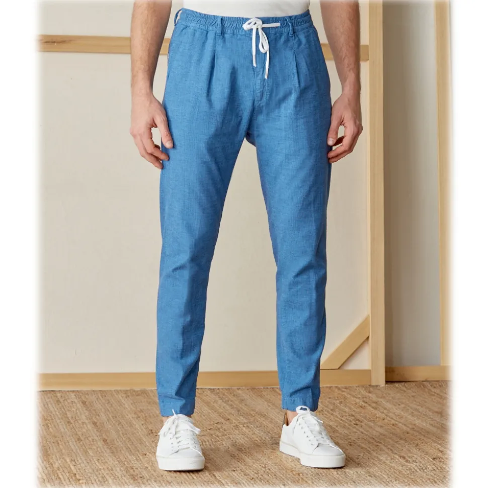 Cruna – Mitte Trousers in Linen – 541 – Light Blue – Handmade in Italy – Luxury High Quality Pants