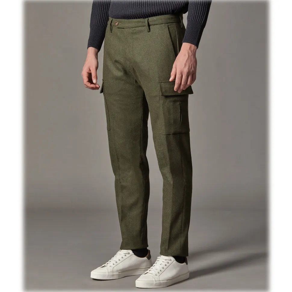 Cruna – Raval Cargo Wool Trousers – 476 – Army – Handmade in Italy – Luxury High Quality Pants