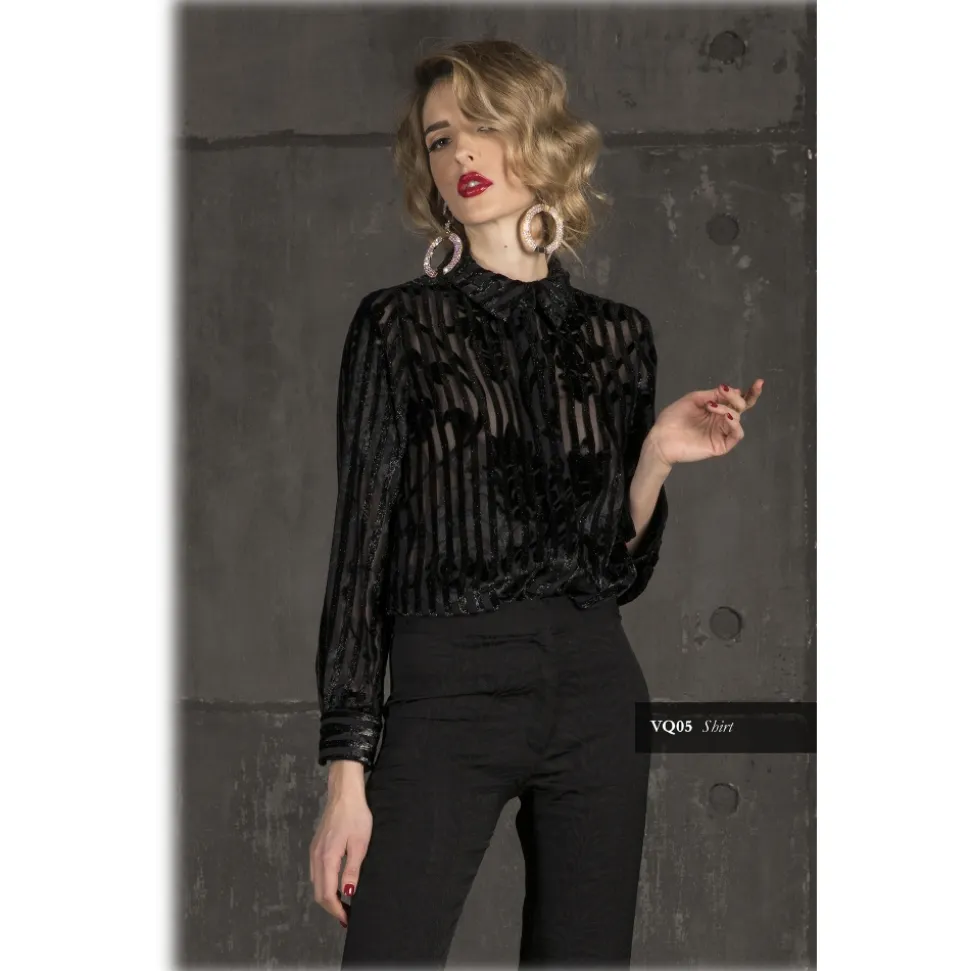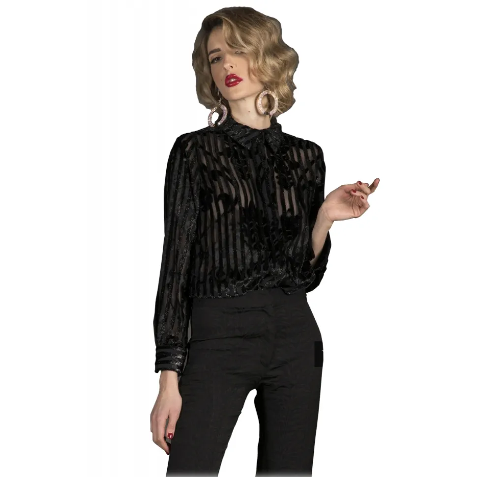 Danilo Forestieri – Long Sleeve Shirt in Devorè Velvet – Black – Shirt – Haute Couture Made in Italy – Luxury Exclusive Collection