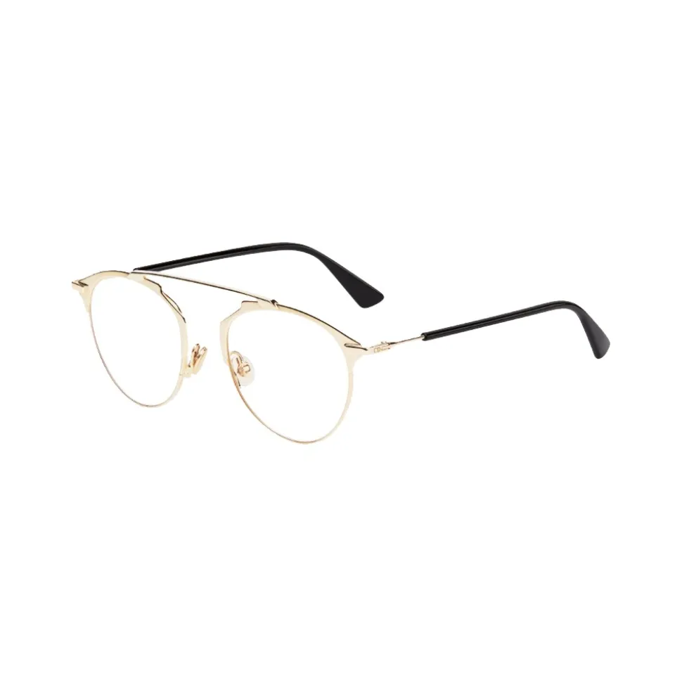 The DiorSoRealO glasses revisit the shape of the iconic DiorSoReal model in a vision version. Flat and ultra-thin, the golden metal emphasizes the exclusive architectural design of the model. The thin temples are in black acetate and golden metal.