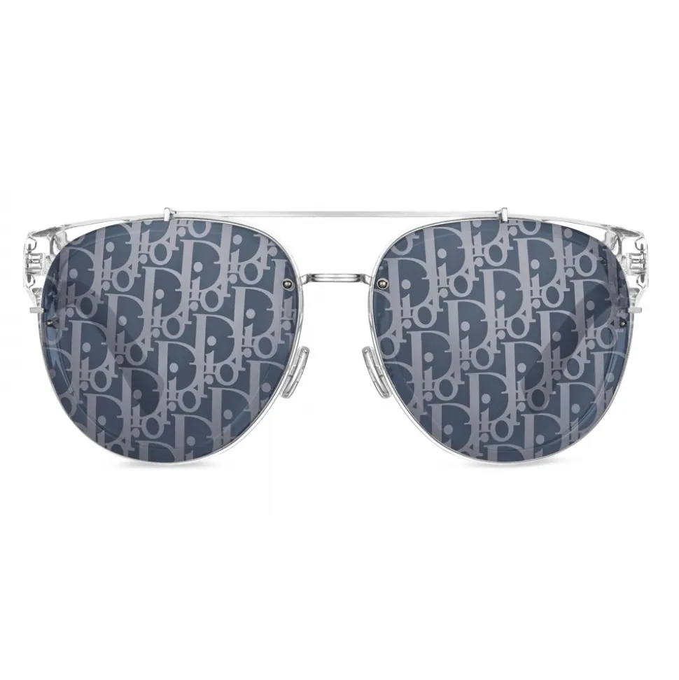 Blue lenses with printed silver Dior Oblique pattern