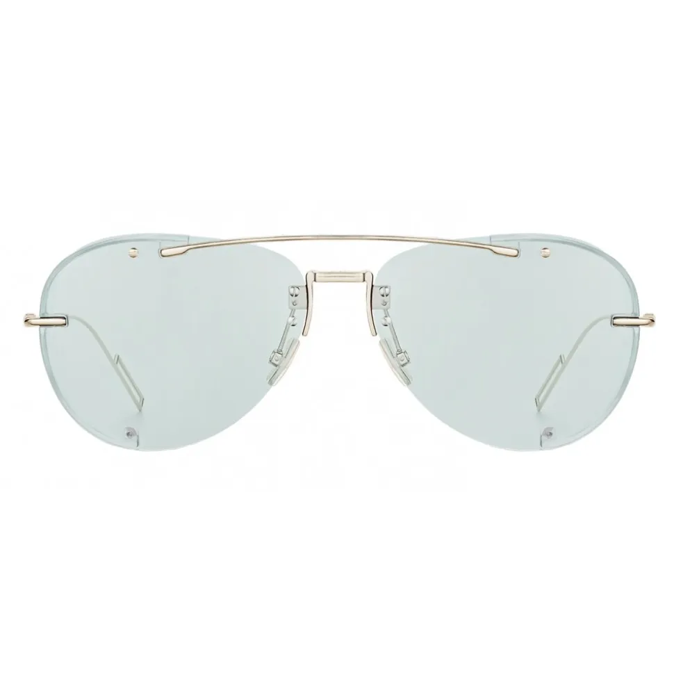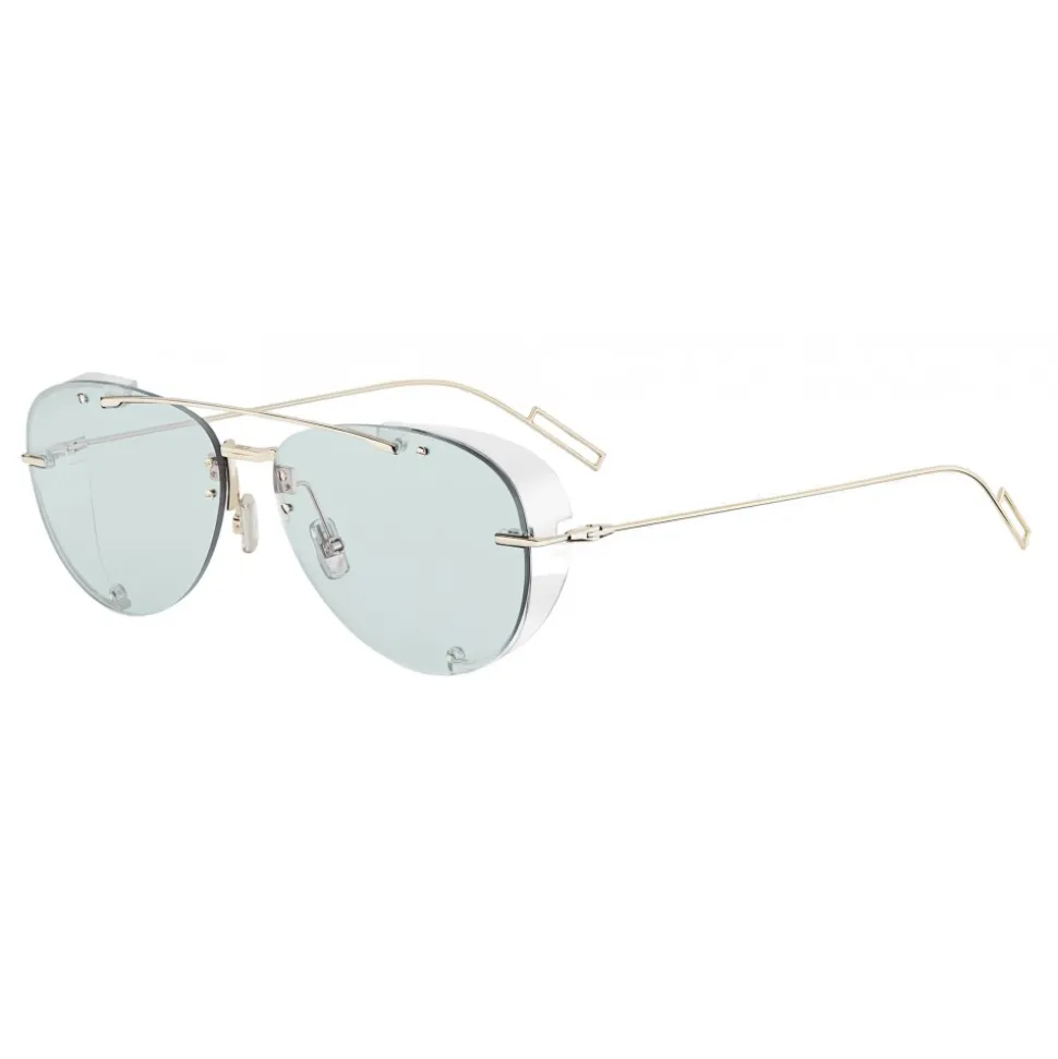 Emblematic accessory of the Summer 2019 fashion show, with their pilot shape the DiorChroma1 sunglasses ensure a trendy look. A double bridge in light gold metal combines the blue lenses, framed by transparent spoilers contrasting with the lenses. Frame in light golden metal.