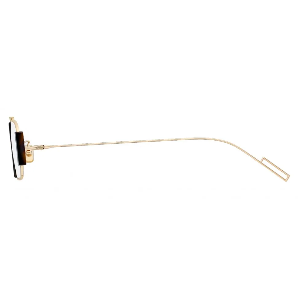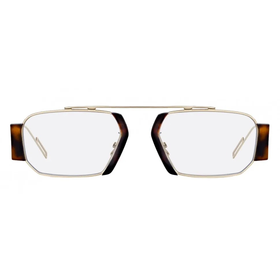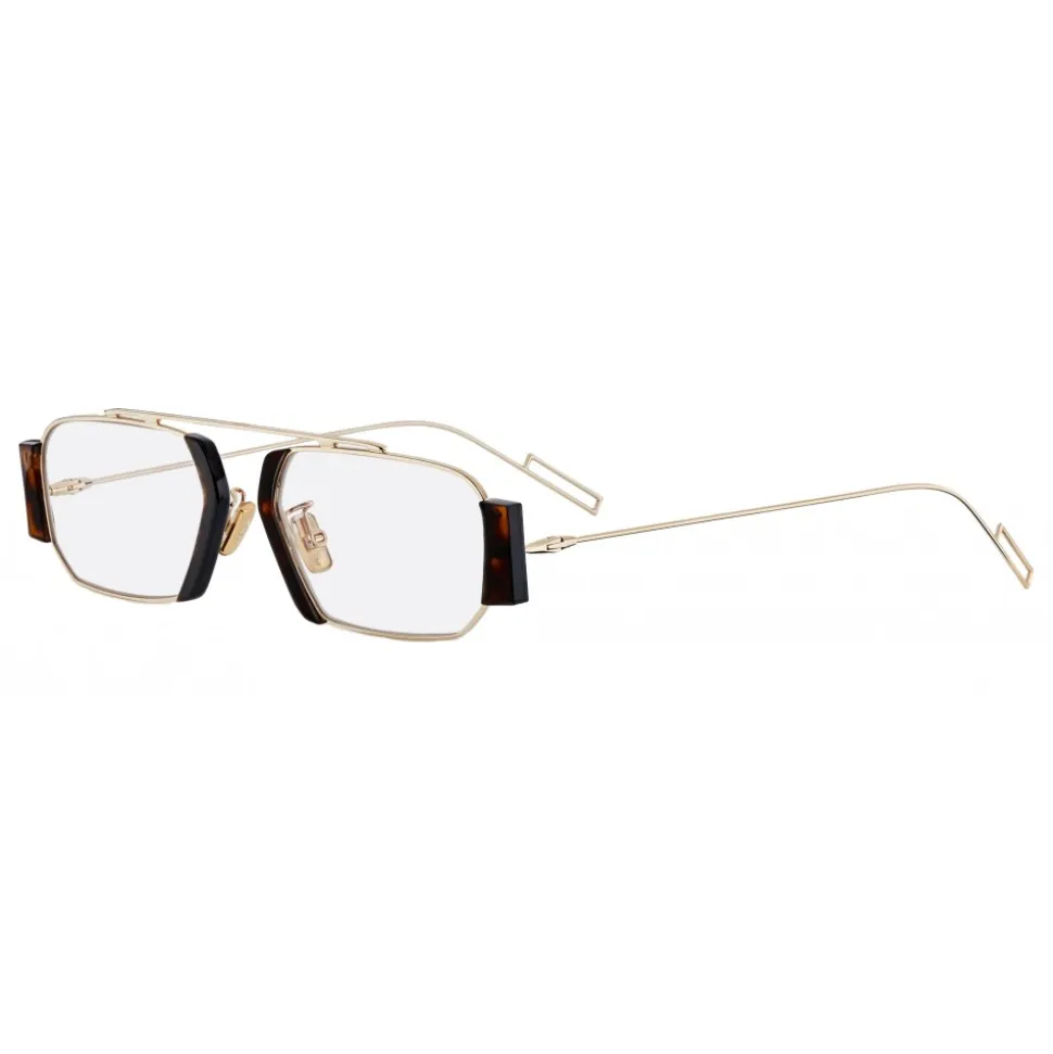 The DiorChroma2 glasses of the Summer 2019 show play with a mix of materials. Tortoise acetate details underline the original design of this vintage-inspired frame. Gilded metal frame.