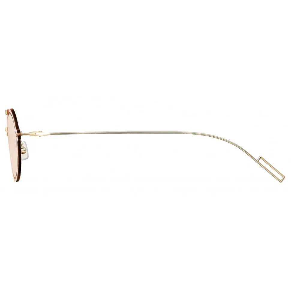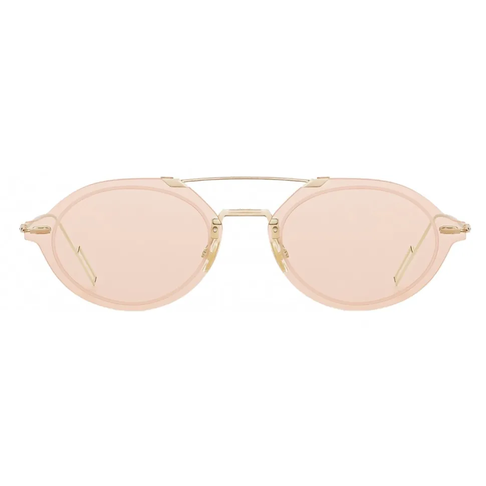 With their small oval shape, the DiorChroma3 sunglasses embody the spirit of the Summer 2019 fashion show. An ultra-thin double bridge is fixed on the light pink engraved lenses, emphasizing the shape of the frame. Gilded metal frame.