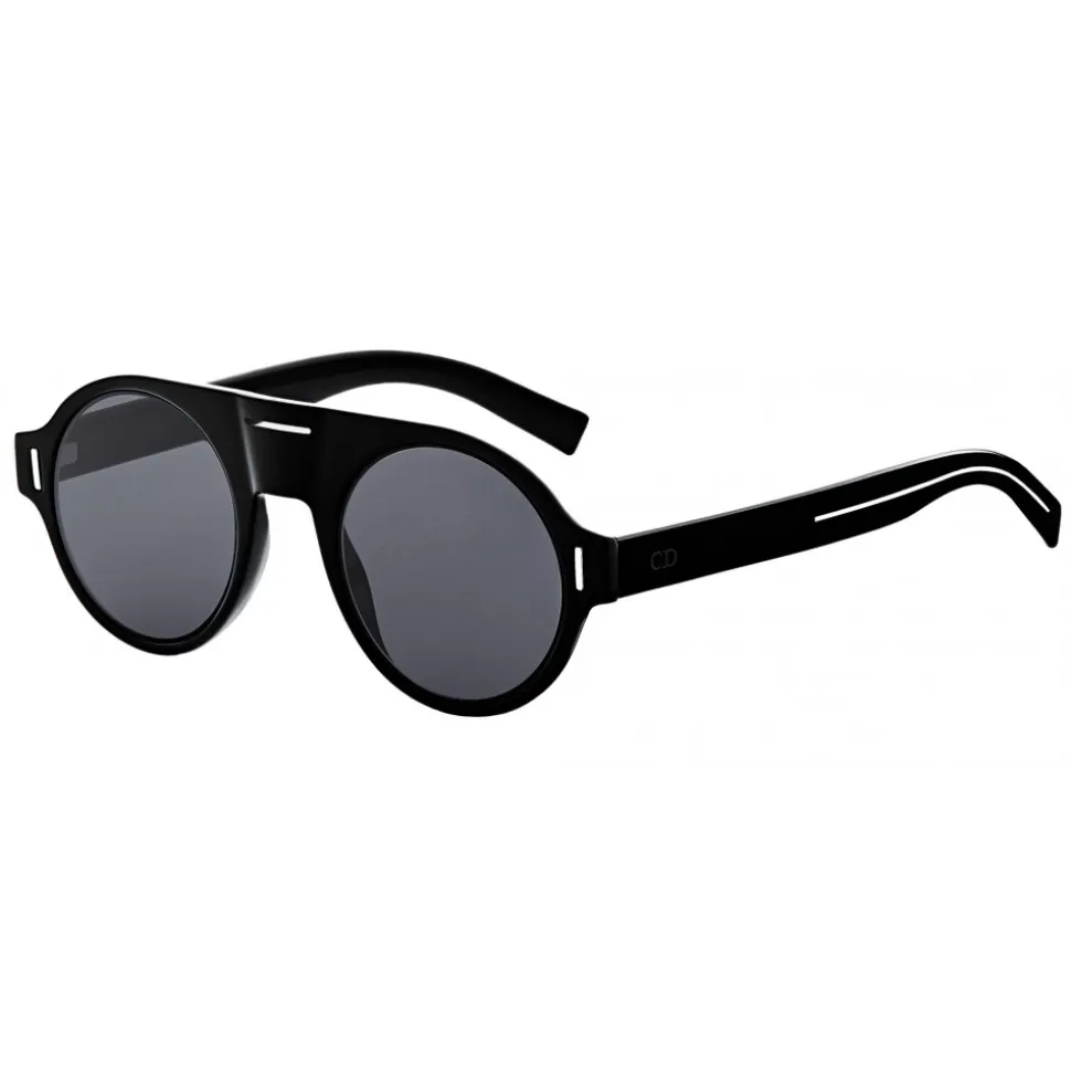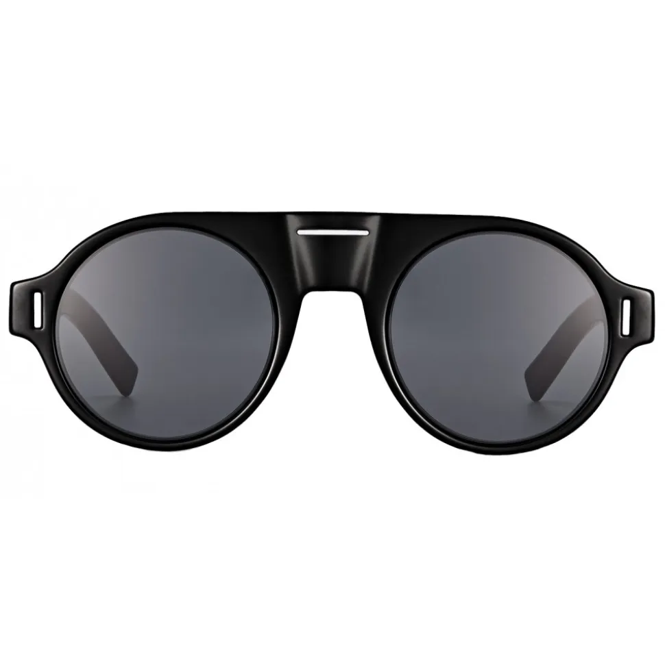 DiorFraction2 sunglasses with a rounded shape. Technical innovation, the ultra-thin black front panel makes the model both lightweight and durable. The emblematic perforated scar stands out on the front.