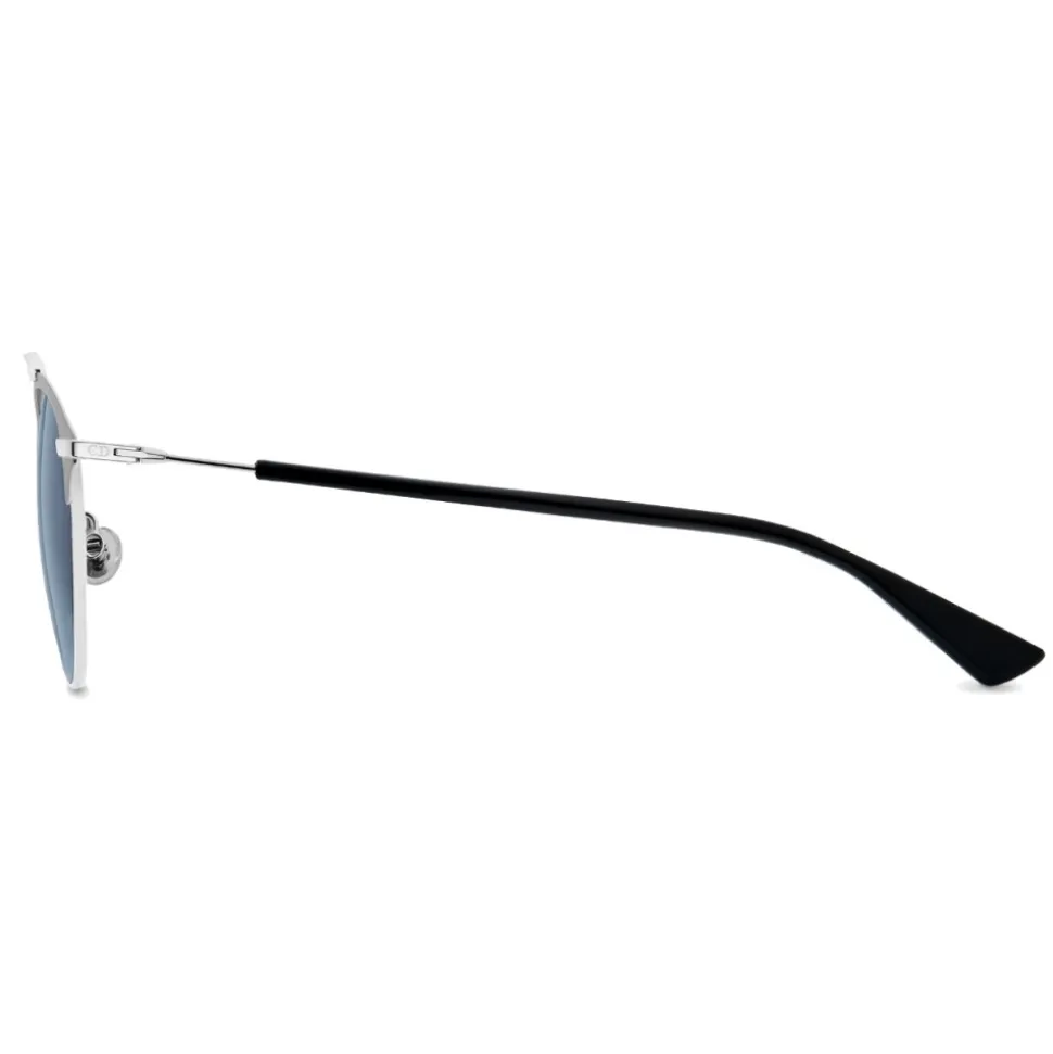 The DiorSoRealM sunglasses revisit the shape of the iconic DiorSoReal model. Flat and ultra-thin, the golden metal emphasizes the exclusive architectural design of the model, accentuated by the play of contrasts between glossy and opaque. The temples are in black acetate and silver metal.