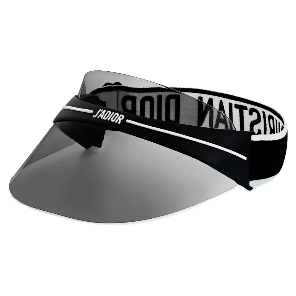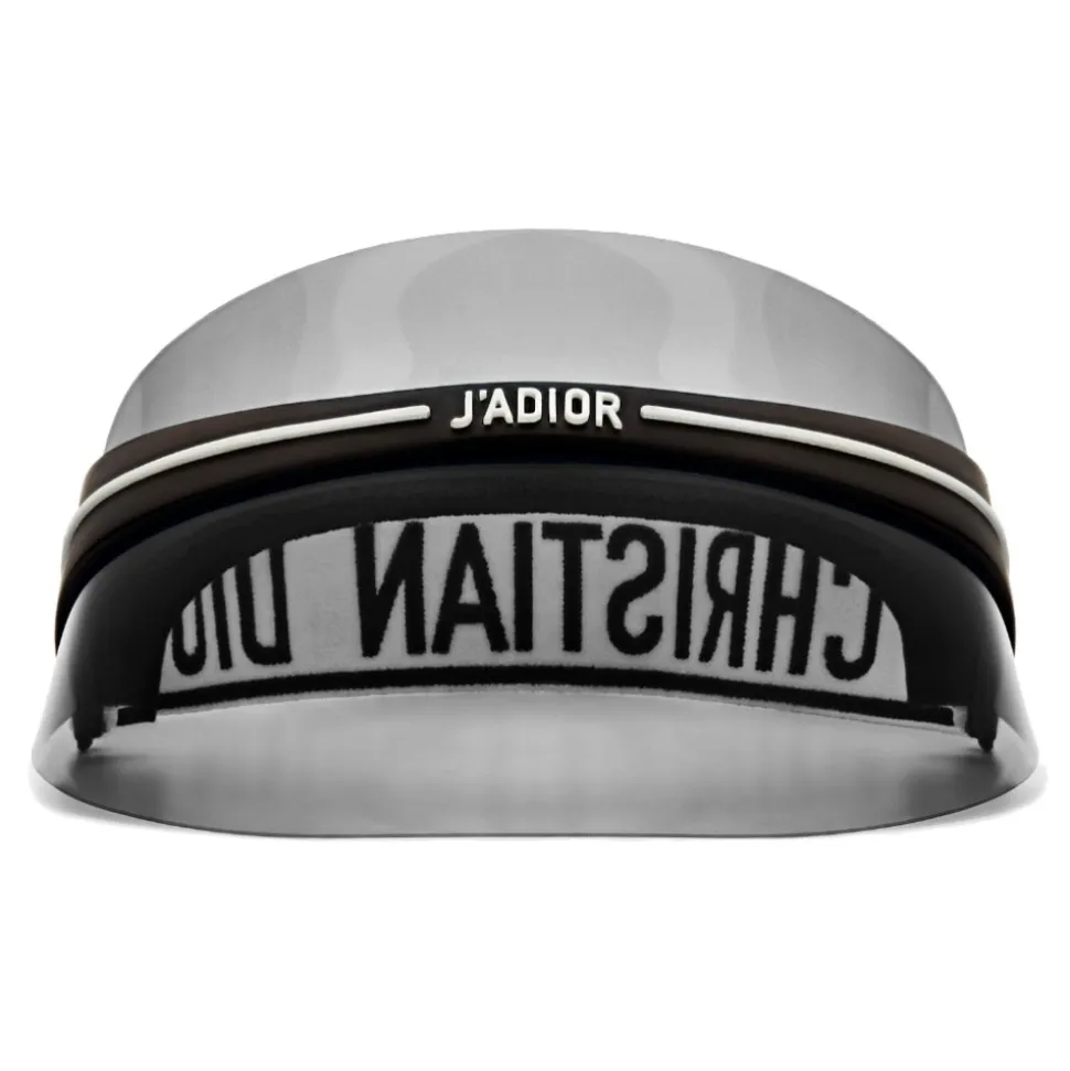 Visor DiorClub1 of the Spring-Summer 2018 show. The white and black structure is embellished by the “J’Adior” signature, while the transparent gray visor recalls the colorful universe of the collection.