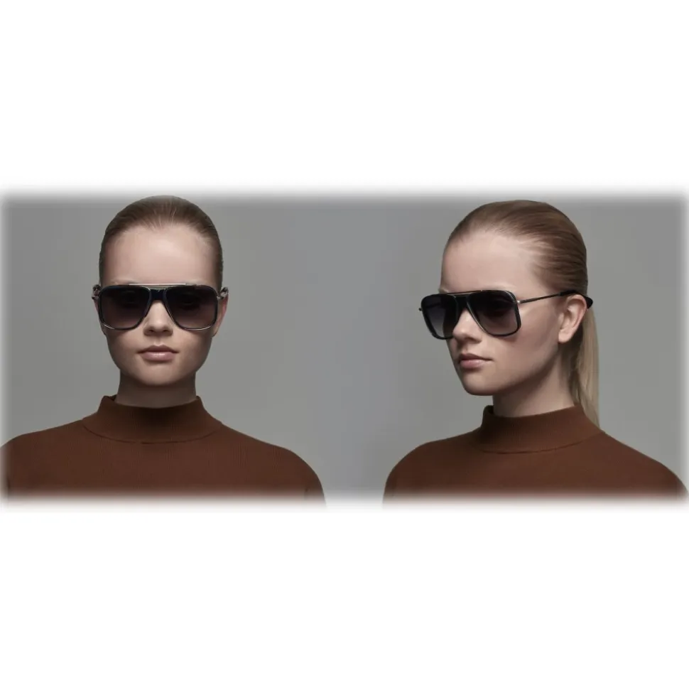 Sculpted with the sleek, confident proportions of the 1980s, INITIATOR weaves between cinematic and stylistic conventions for an altogether new look. The frame’s most prominent feature—a sporty, acetate bridge piece—was inspired from archival pieces of the 1970s; the heft of this muscular chassis thrums with the energy of a retro science fiction films, offering a portal to the future fixed firmly in the past.