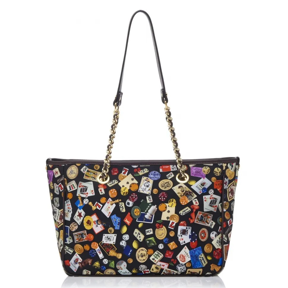 Gold-tone hardware.