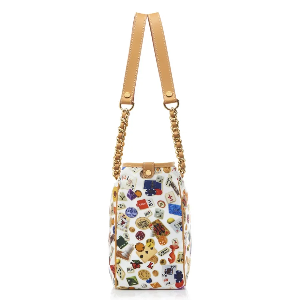 Flat calf leather handles with metal chains.