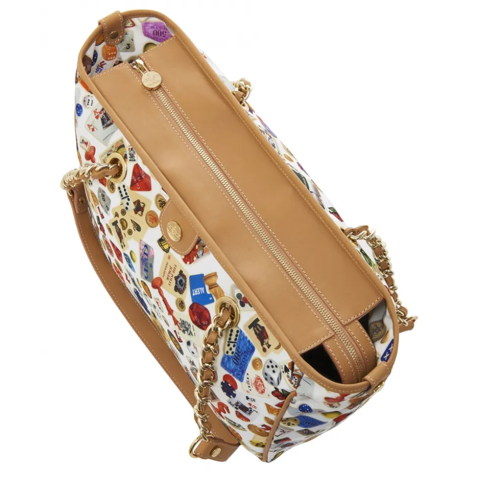 Gold-tone hardware.