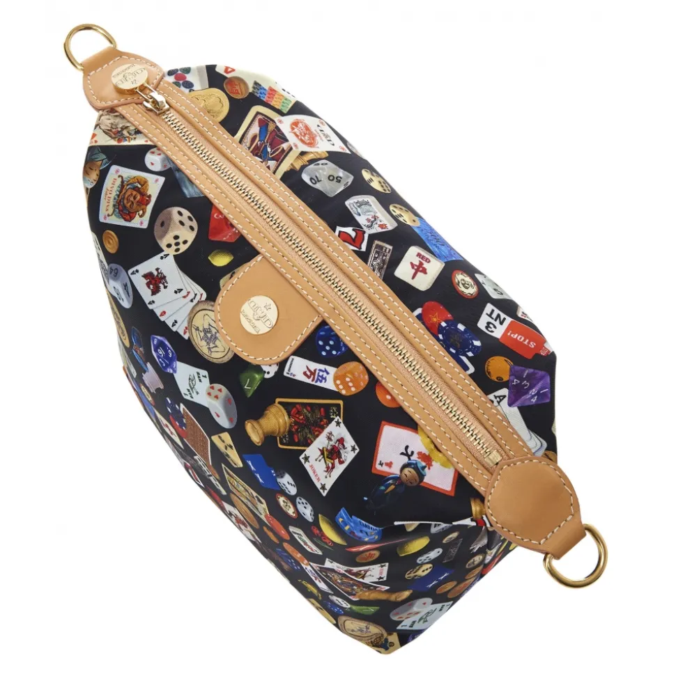 Gold-tone hardware.