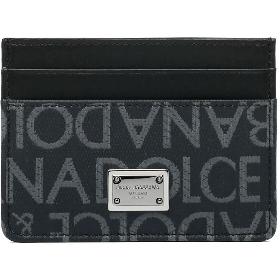 Dolce & Gabbana – Black and Grey Calf Leather Logo Jacquard Card Holder – Dolce & Gabbana Exclusive Luxury Collection