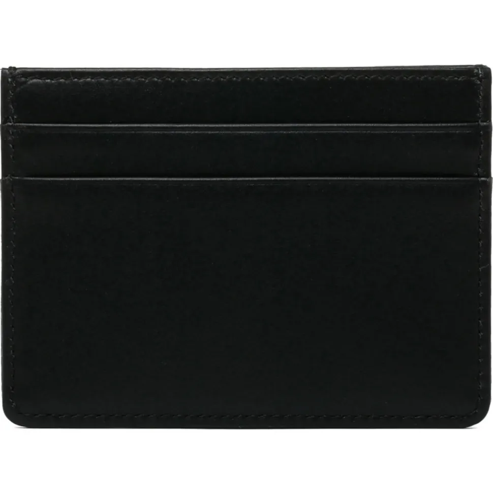 Dolce & Gabbana Black and Grey Calf Leather Logo Jacquard Card Holder. Black and grey calf leather card holder, jacquard logo motif, silver tone logo plaque, card slots and main compartments.