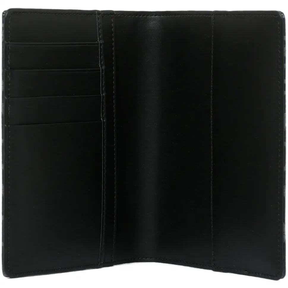 Dolce & Gabbana Black Calf Leather Jacquard Logo Cardholder. Black calf leather cardholder, jacquard logo motif, silver tone logo plaque, internal card slots and note compartment.
