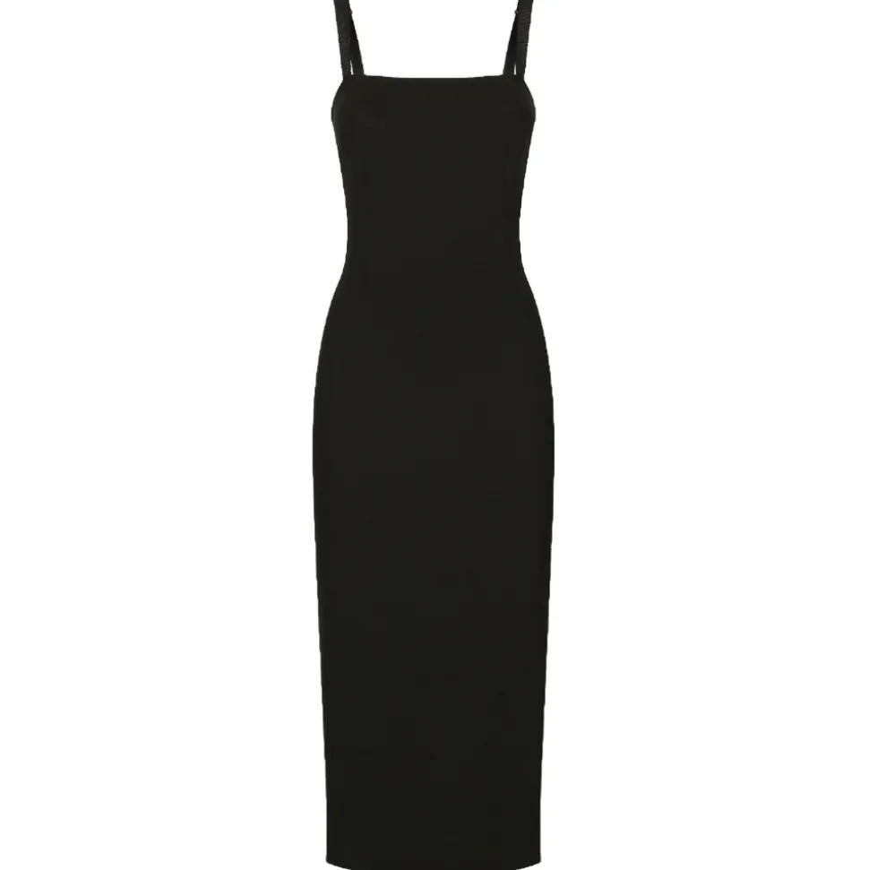 Dolce & Gabbana Dress Black, stretch jersey sheath dress, straight neckline, sleeveless with adjustable elastic straps, back slit, unlined, back zip and hook closure.