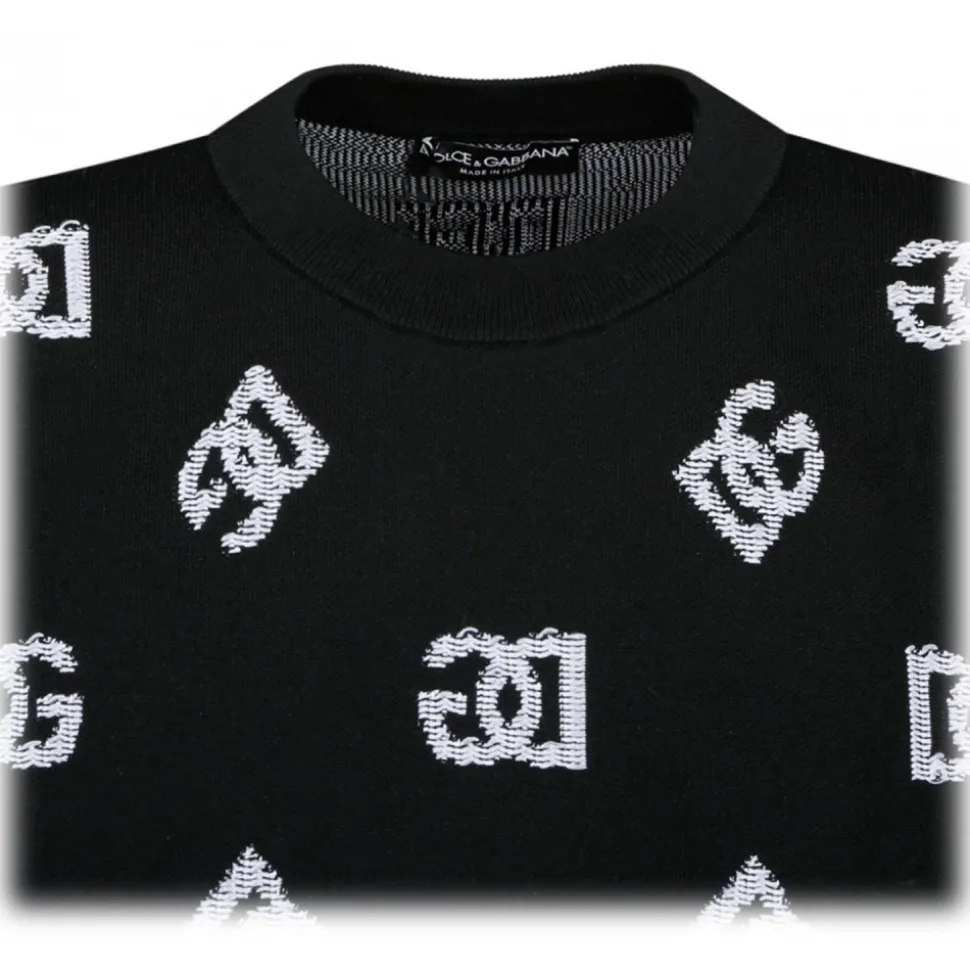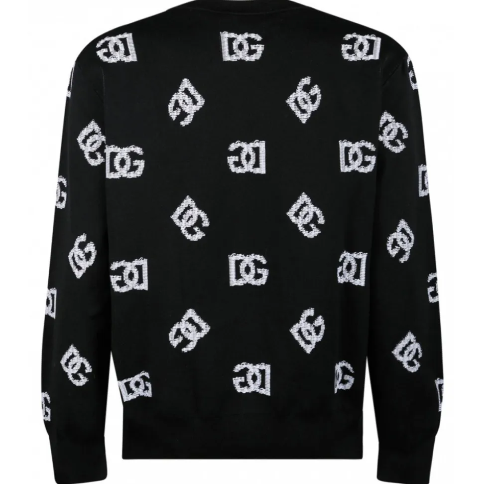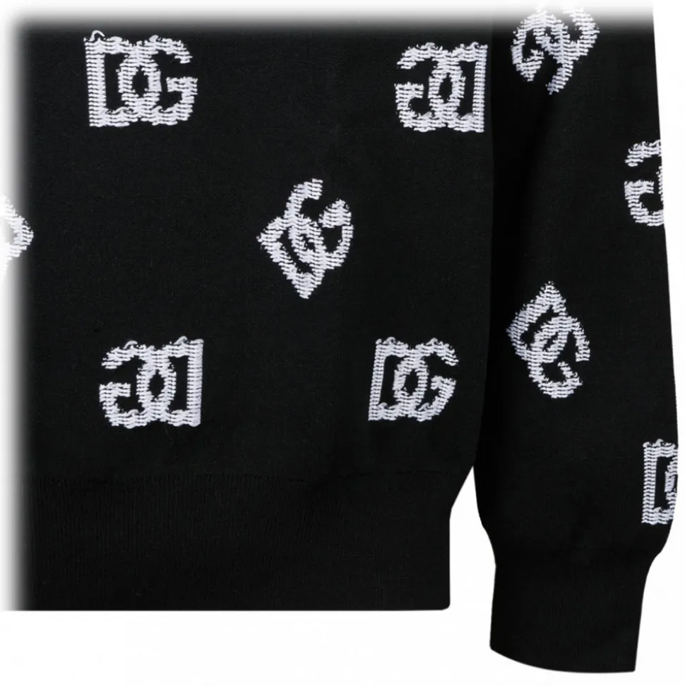 Dolce & Gabbana Black Jacquard Sweater. Black technical jacquard sweater, round neck, DG logo.