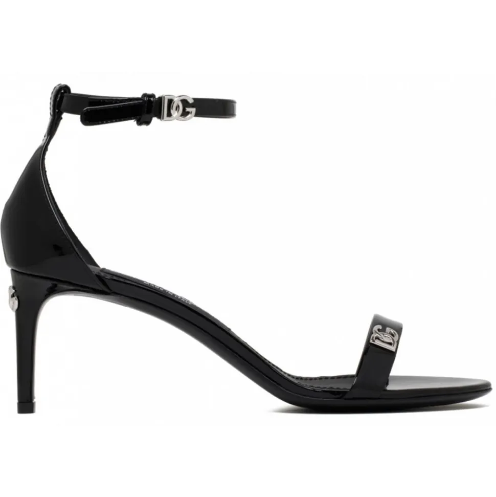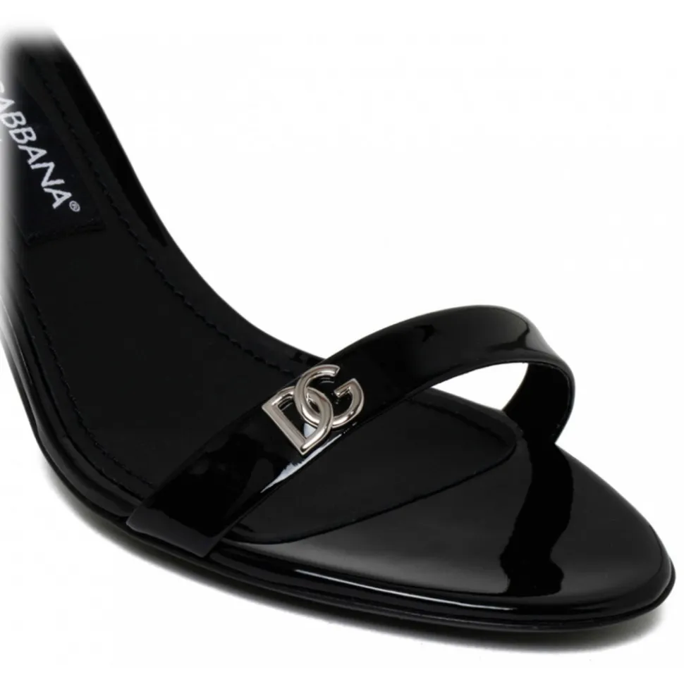 Dolce & Gabbana Black Keira Sandals. Black patent leather sandals with DG logo, 60 mm heel, leather insole with branded label, branded leather sole.