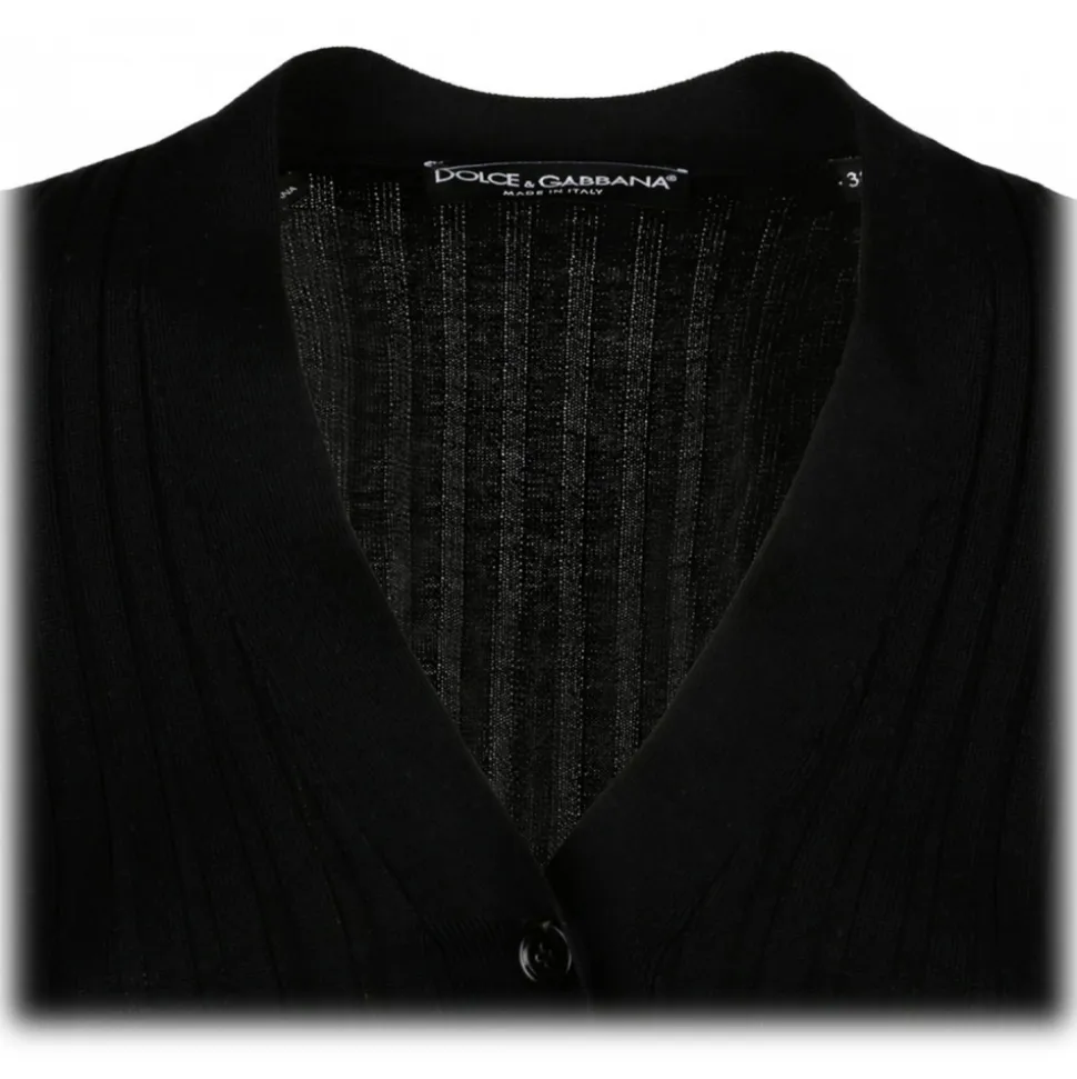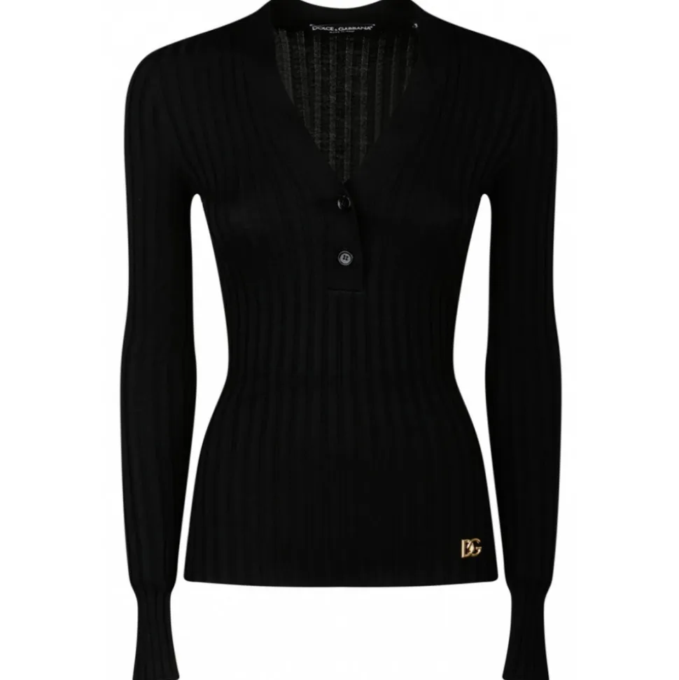 Dolce & Gabbana Black Wool Sweater. Black wool flat rib sweater, V neck with small buttons, long sleeves, slim fit.