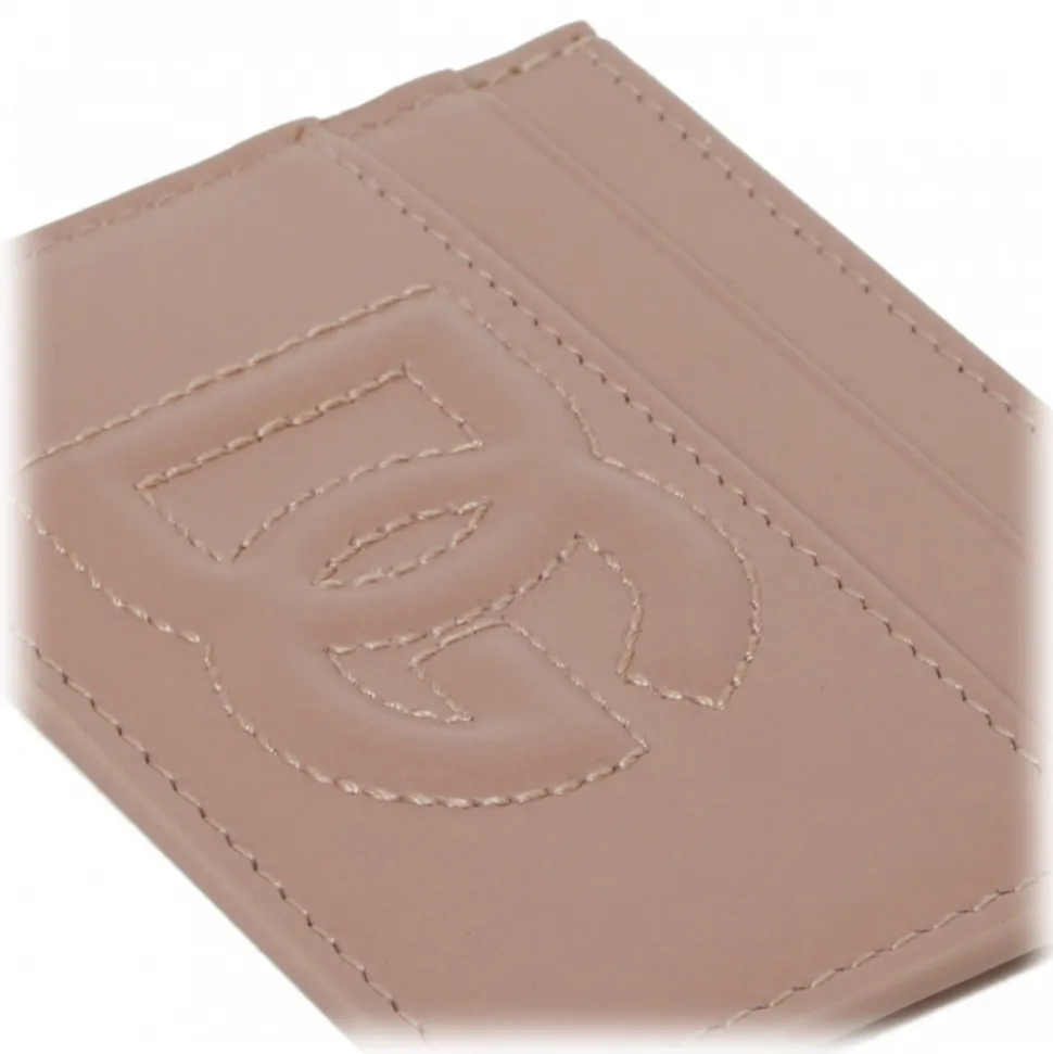 Dolce & Gabbana Blush Logo Card Holder. Blush calfskin DG logo card holder, four front card slots and one on top.