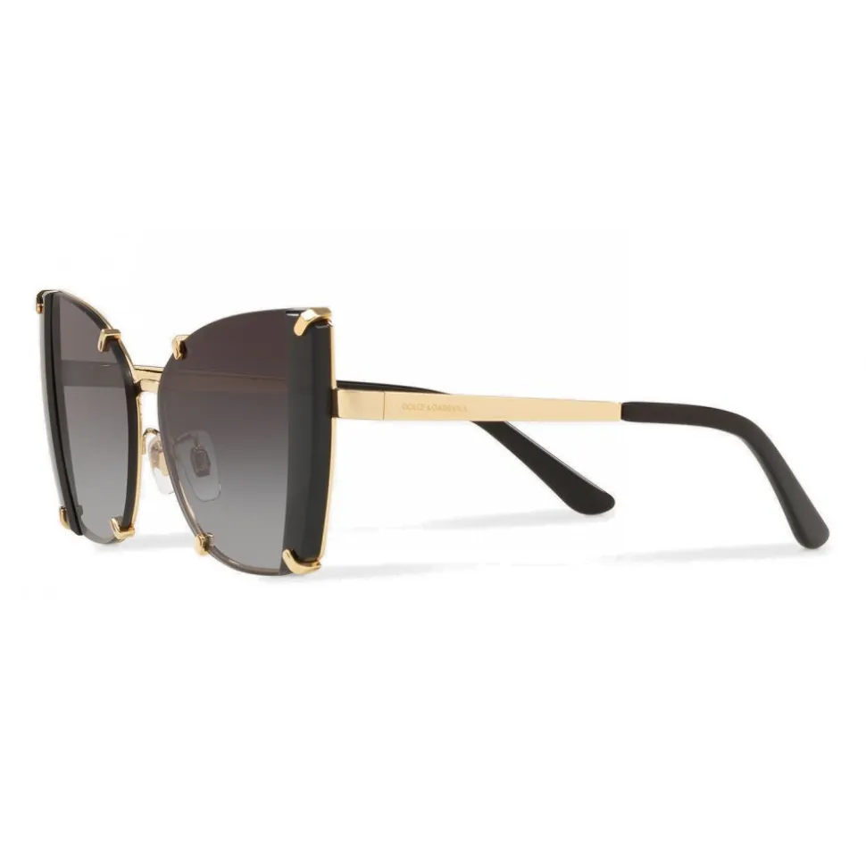 Butterfly sunglasses in metal. The style is characterized by a nylon application that takes its inspiration from the facets of precious stones. Dolce & Gabbana logo finely engraved on metal temples.