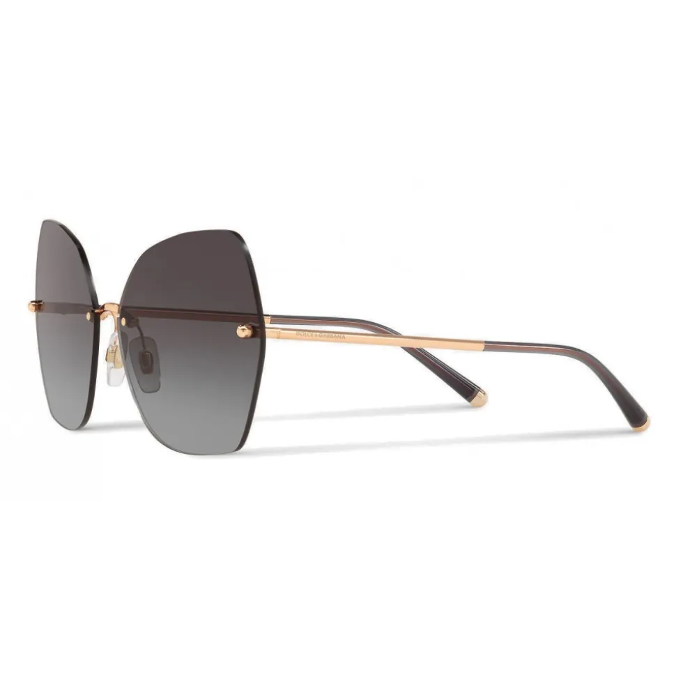 Butterfly-shaped sunglasses embellished with metallic details and a metal bridge. Dolce & Gabbana logo finely engraved on metal temples.