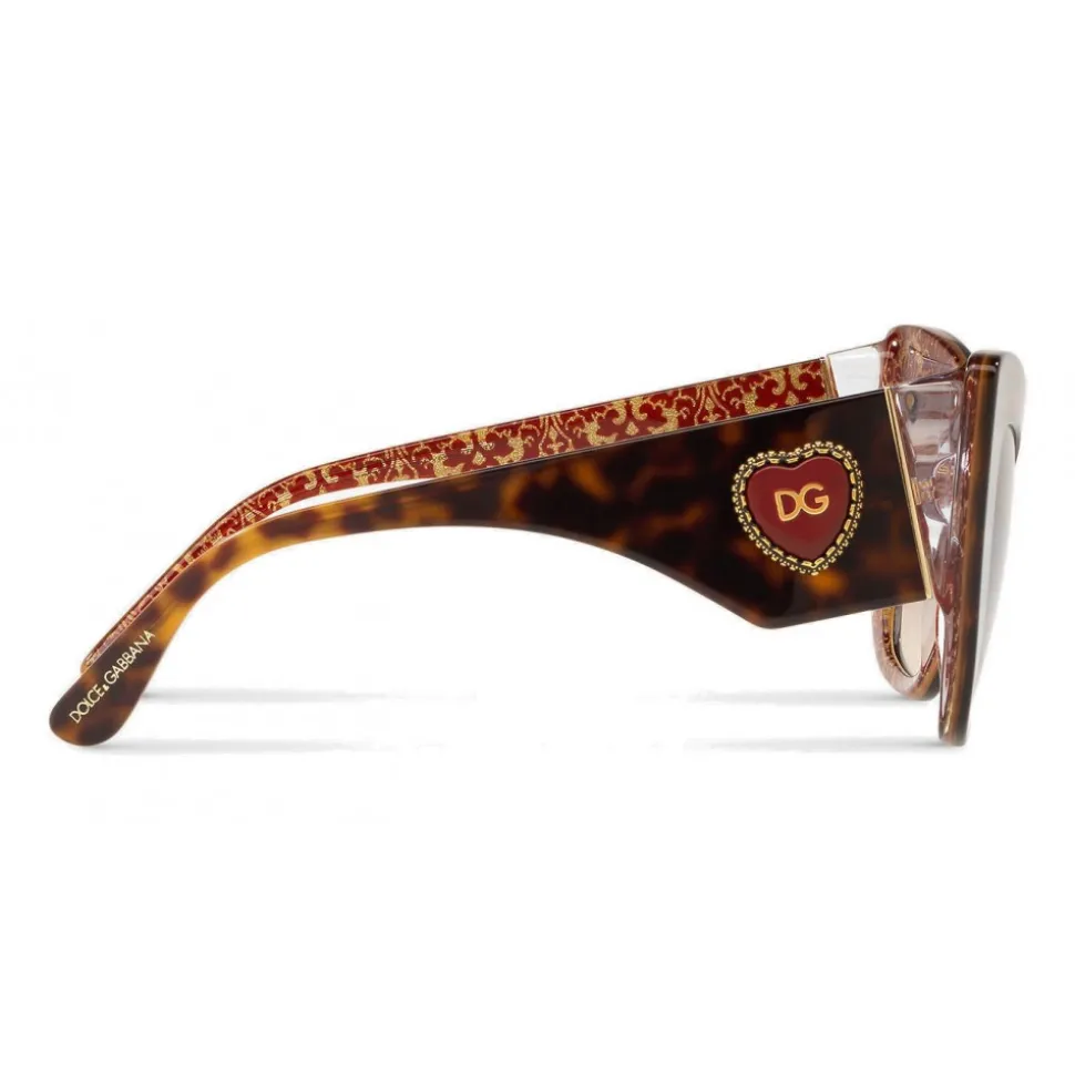 Cat-eye sunglasses in acetate. The sinuous temples are embellished with a relief decoration in the shape of “Sacred Heart” personalized by the monogram DG and garnished with a laced metal embroidery.