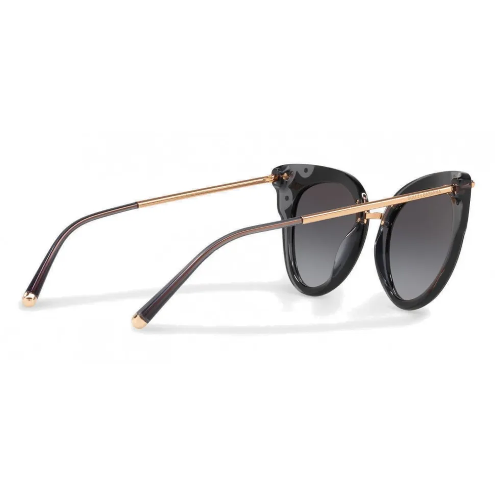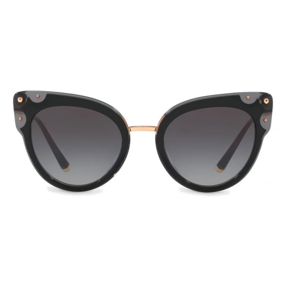 Cat-eye sunglasses in acetate embellished with metallic details and a metal bridge. Dolce & Gabbana logo finely engraved on metal temples.